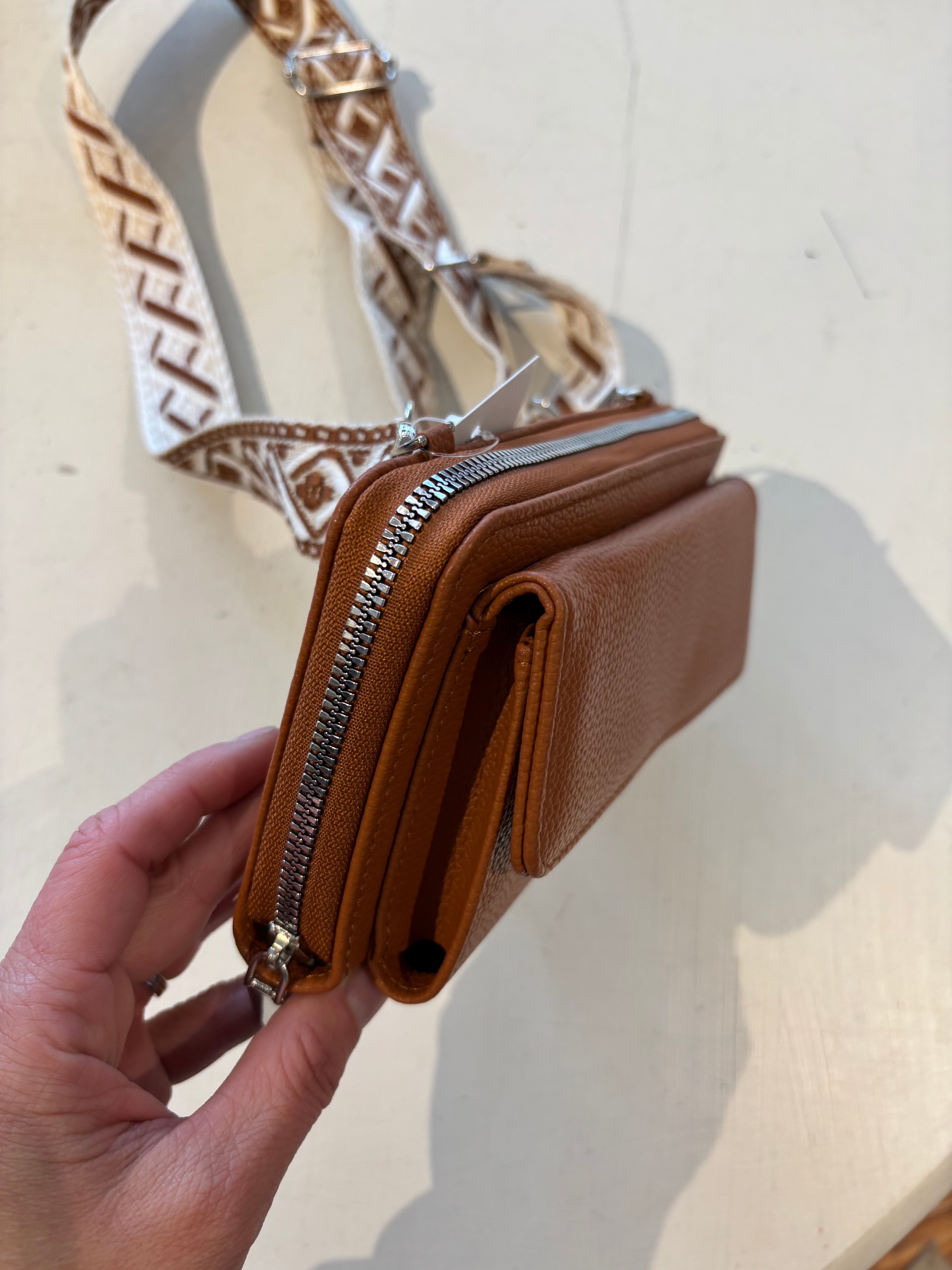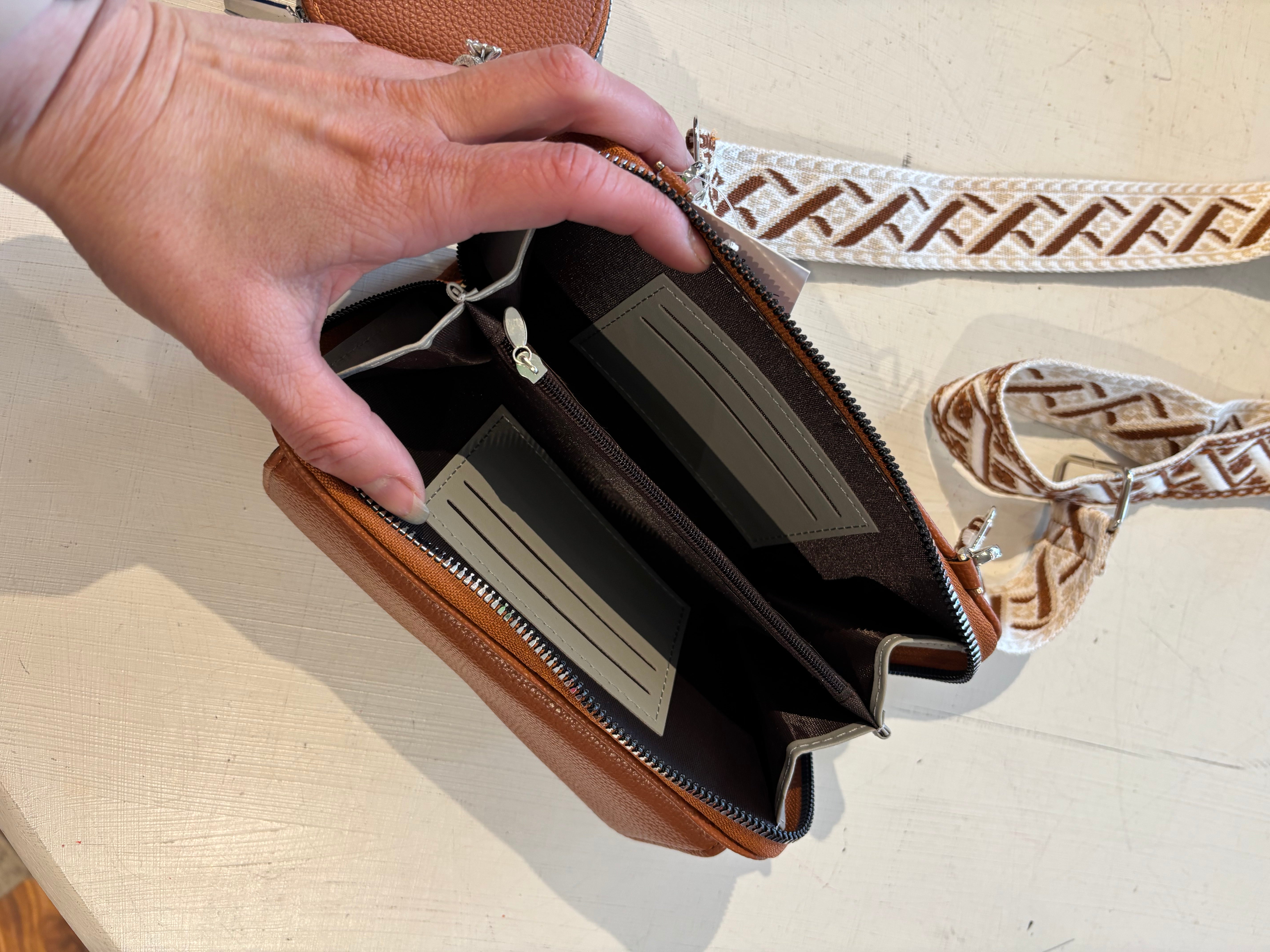 Your phone gets VIP treatment too, thanks to the exterior snap-flap pocket that keeps it secure and easy to reach. The removable guitar strap adds a fun, stylish twist, while the included round clip-on coin purse can be kept inside or clipped to the outside for quick access. It’s compact, practical, and ready for whatever your day brings.