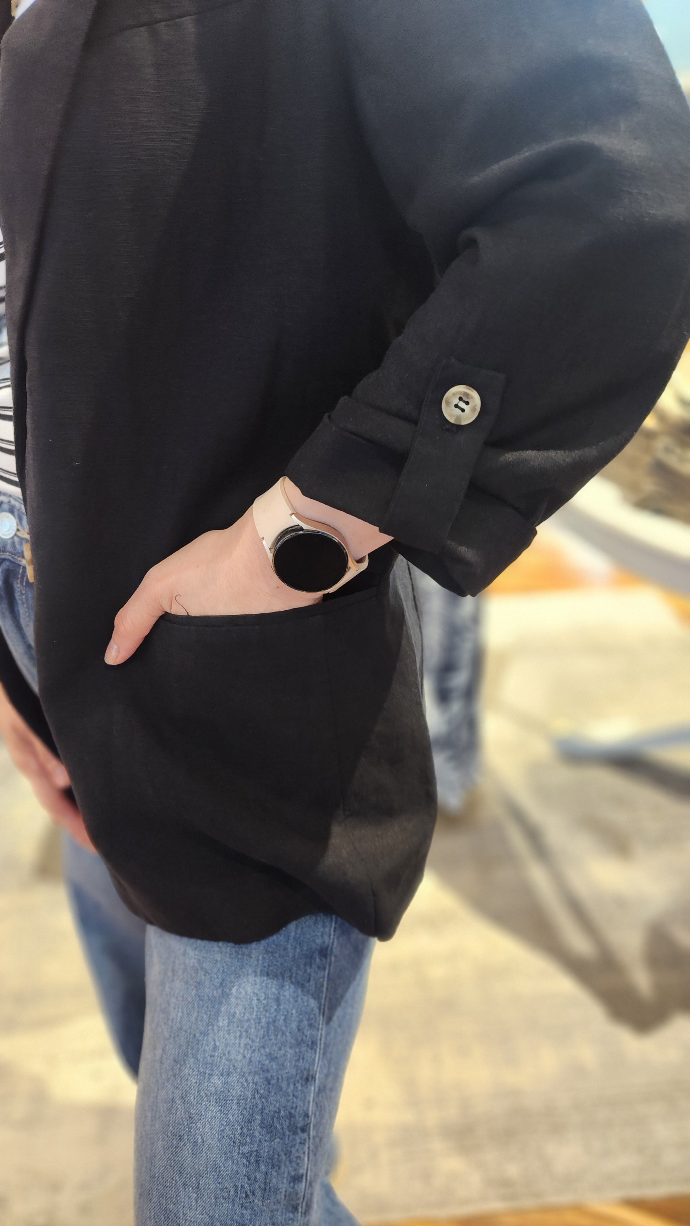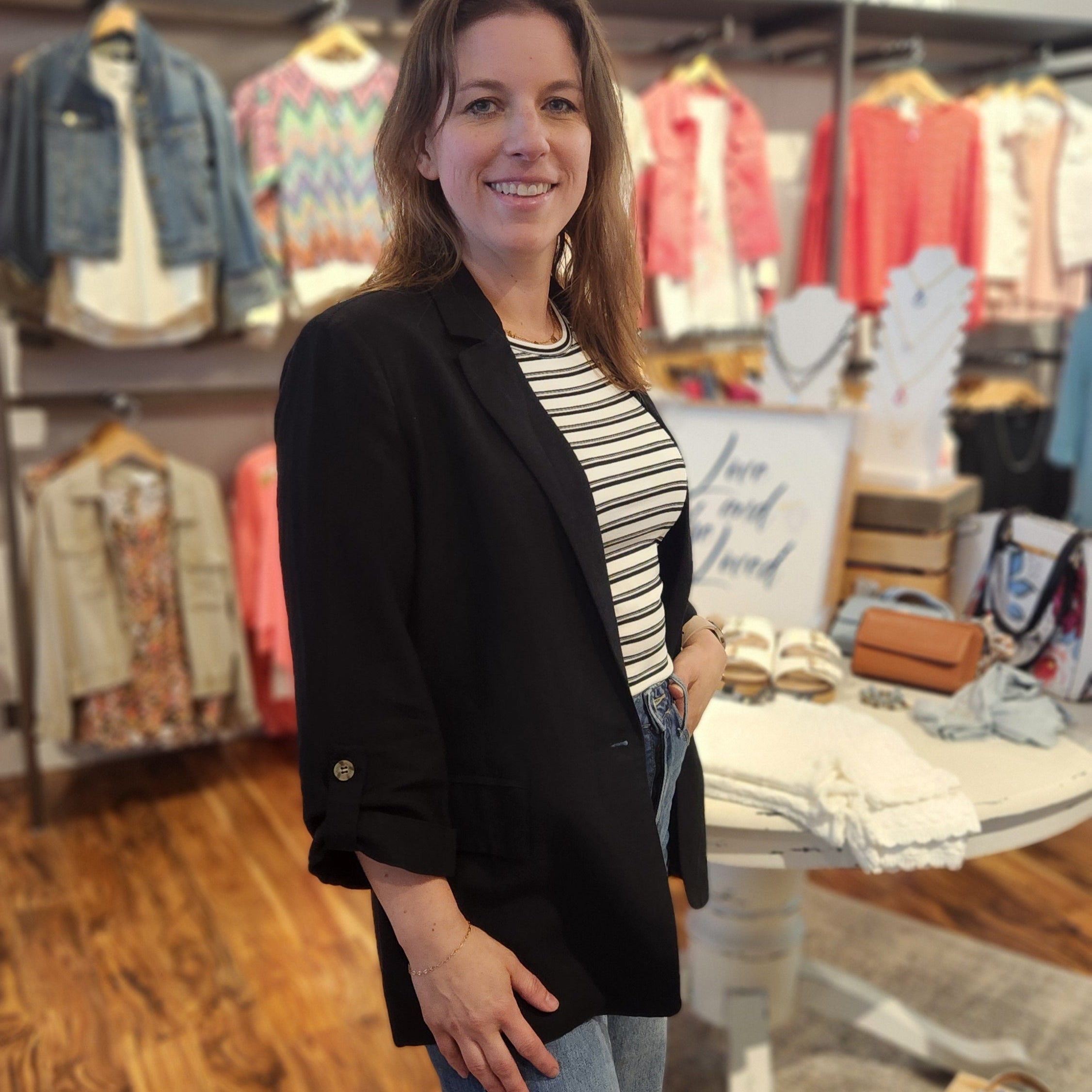 Linen Blend Blazer with 3/4 Sleeves