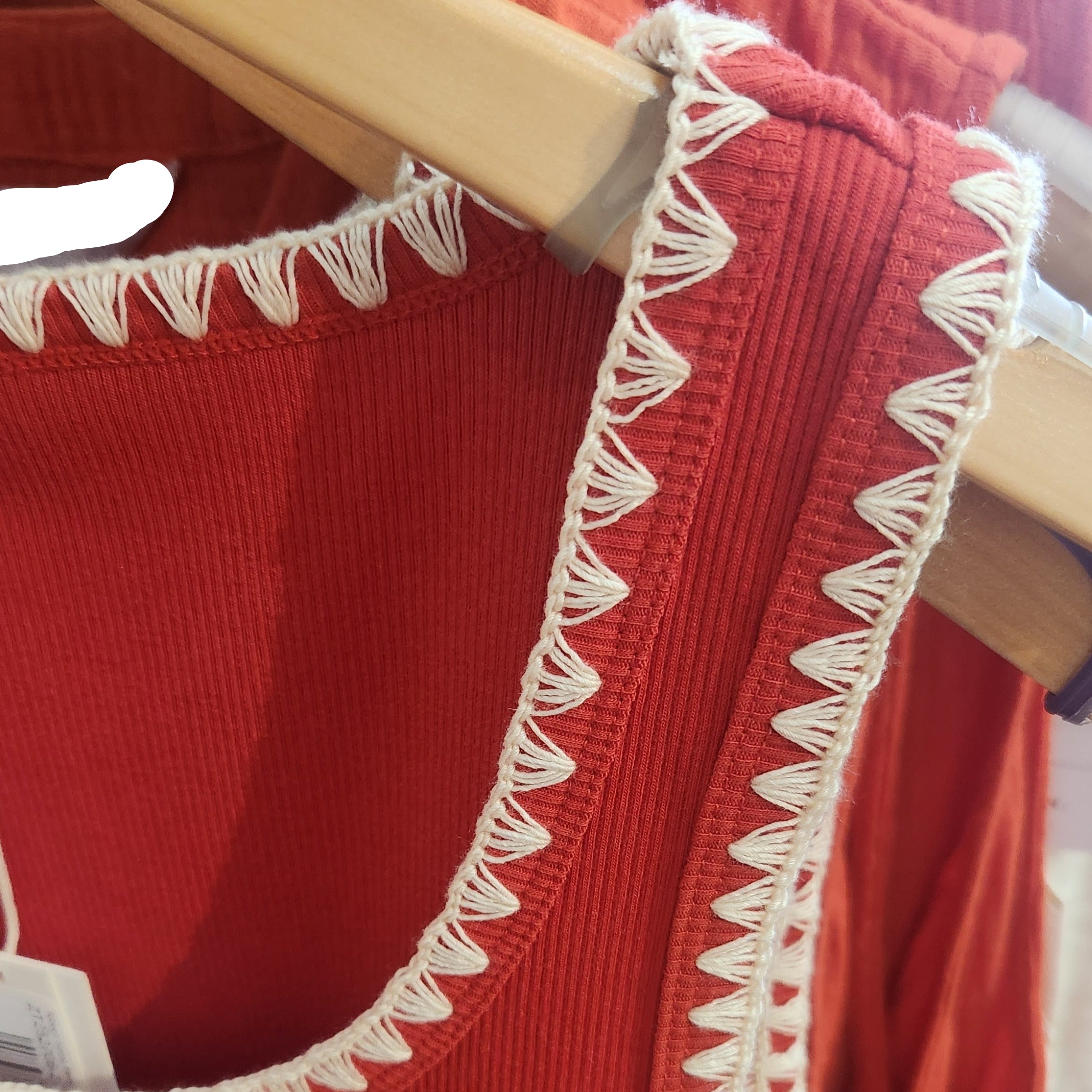 Ribbed Scoop Neck Tank with Embroidery Edging