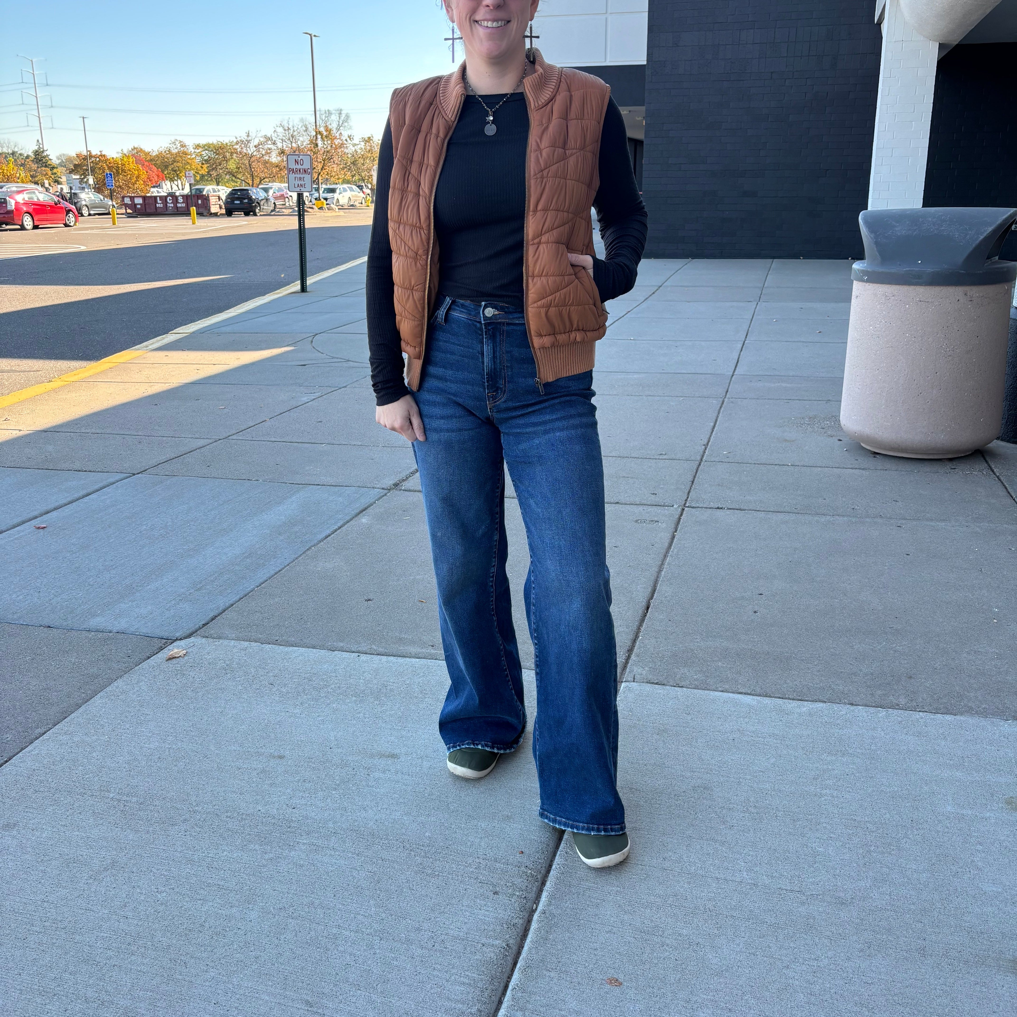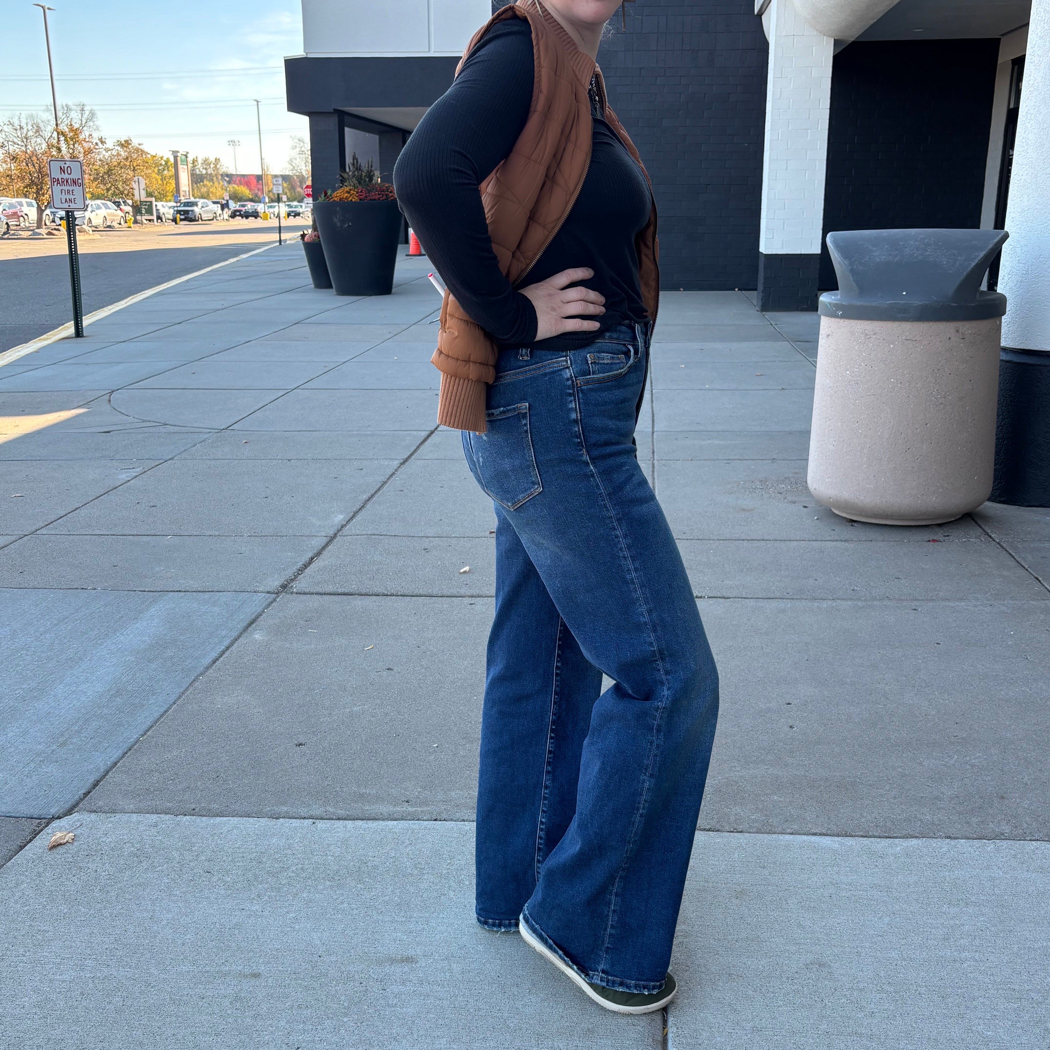 Classic meets contemporary in these High Rise Wide Leg Jeans, designed to flatter and elongate with a sleek 10-inch rise and a 31-inch inseam. Crafted from a soft, stretch denim blend, they offer the perfect balance of structure and comfort. The wide-leg silhouette gives an effortlessly chic look that transitions seamlessly from casual days to dressed-up nights.