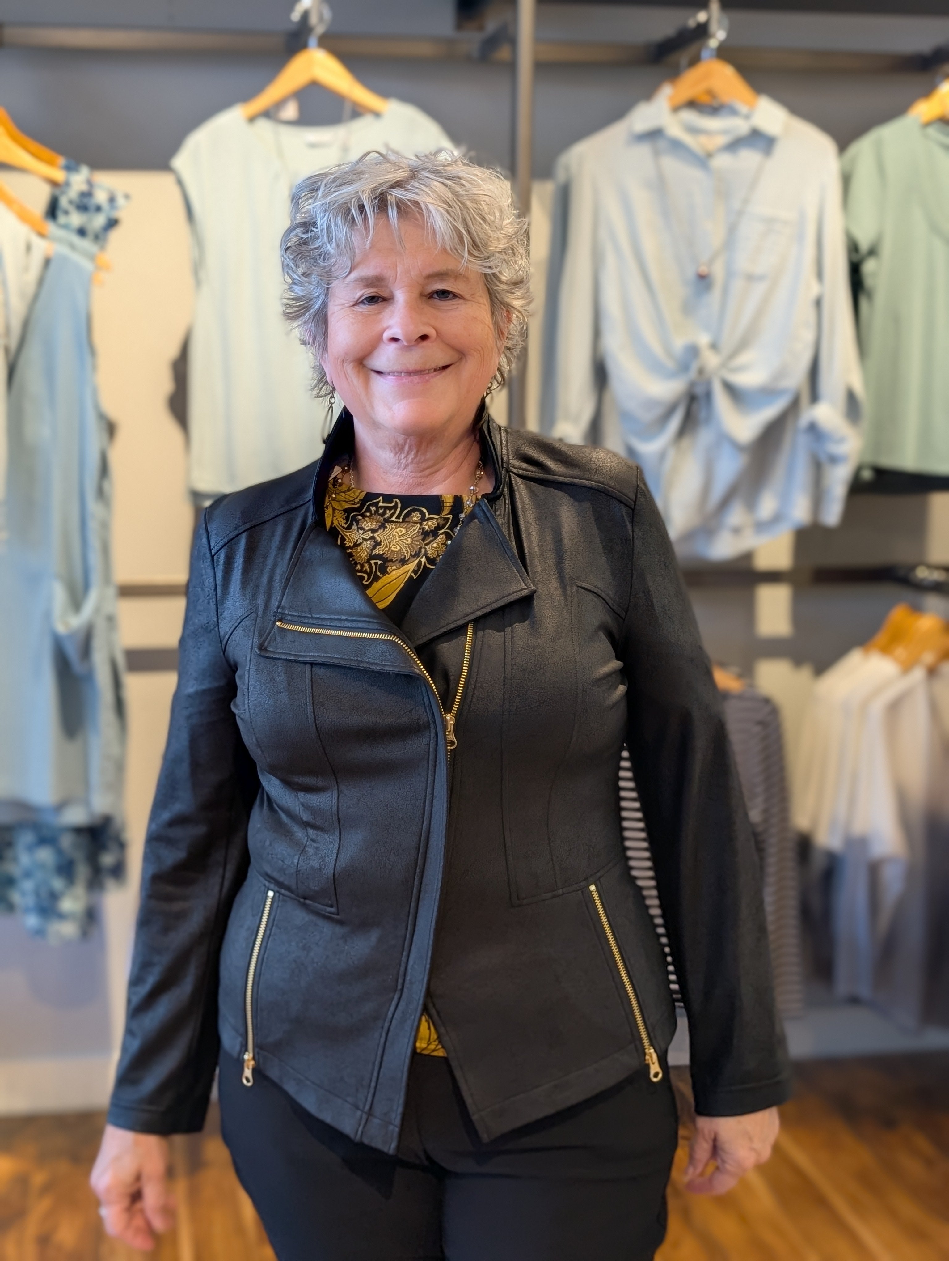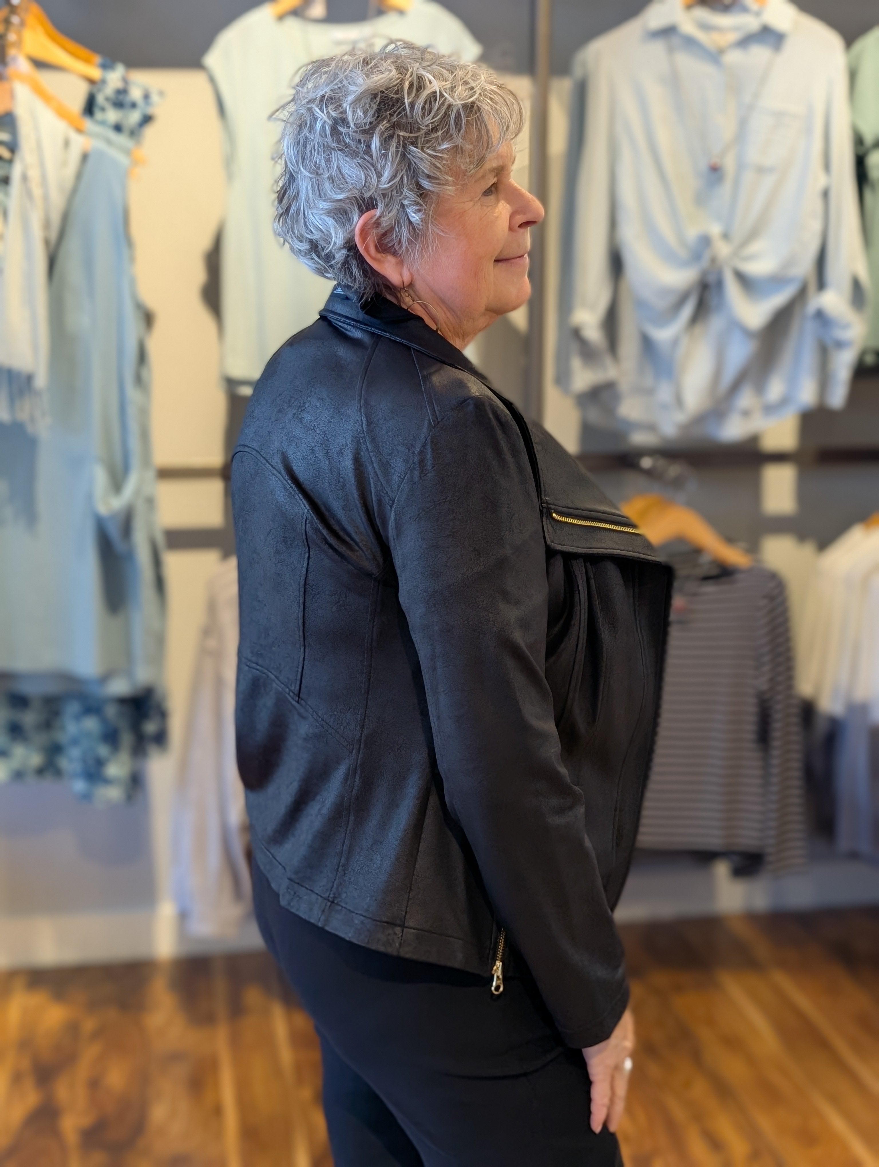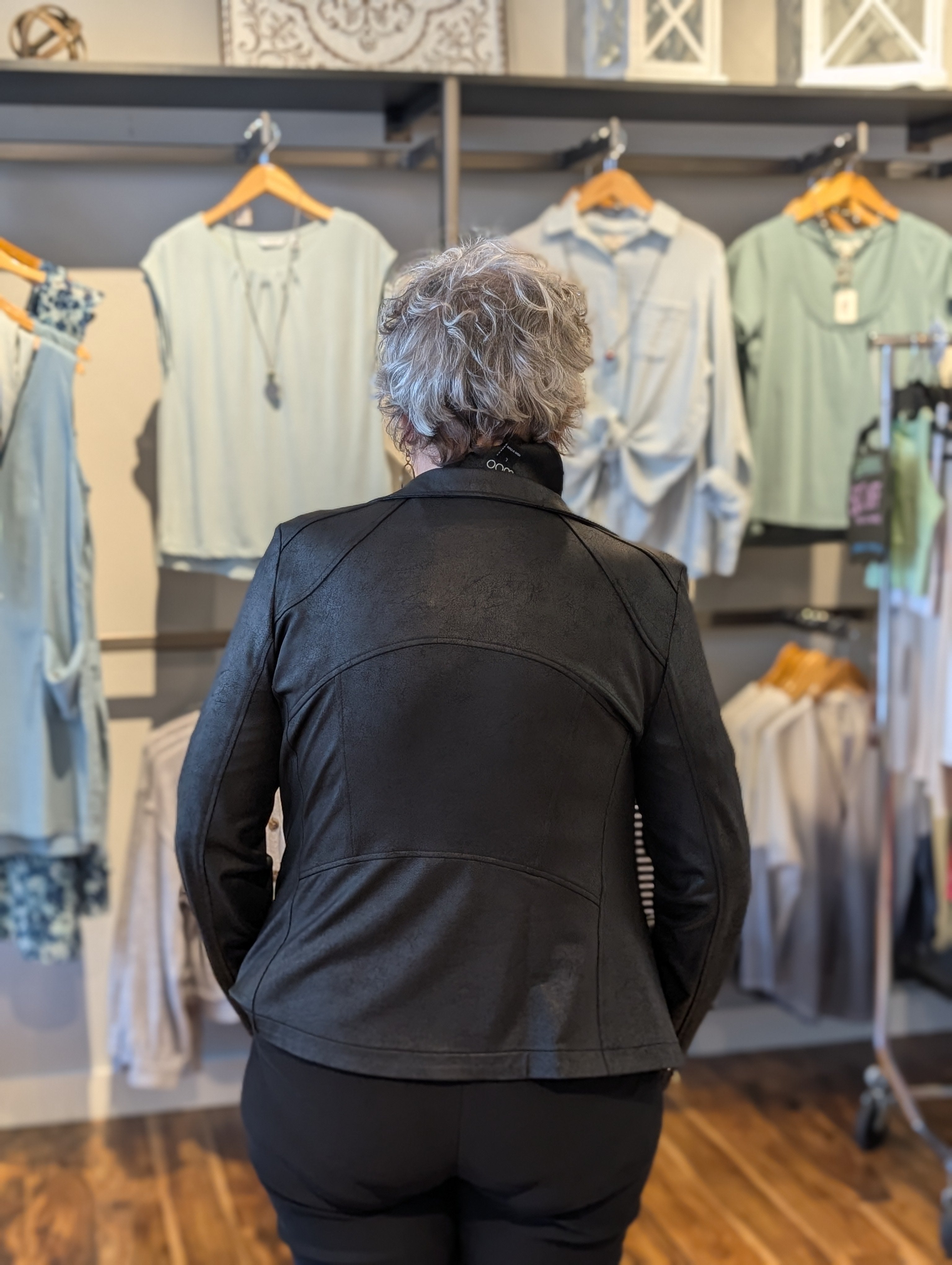 Elevate your outerwear with this Classic Liquid Leather Knit Jacket featuring patented liquid leather knit material. Designed for durability and style, this jacket offers a sleek finish with zip details for a modern edge. Its washable fabric ensures easy care while maintaining a high-quality look, making it a practical yet sophisticated choice for any wardrobe.