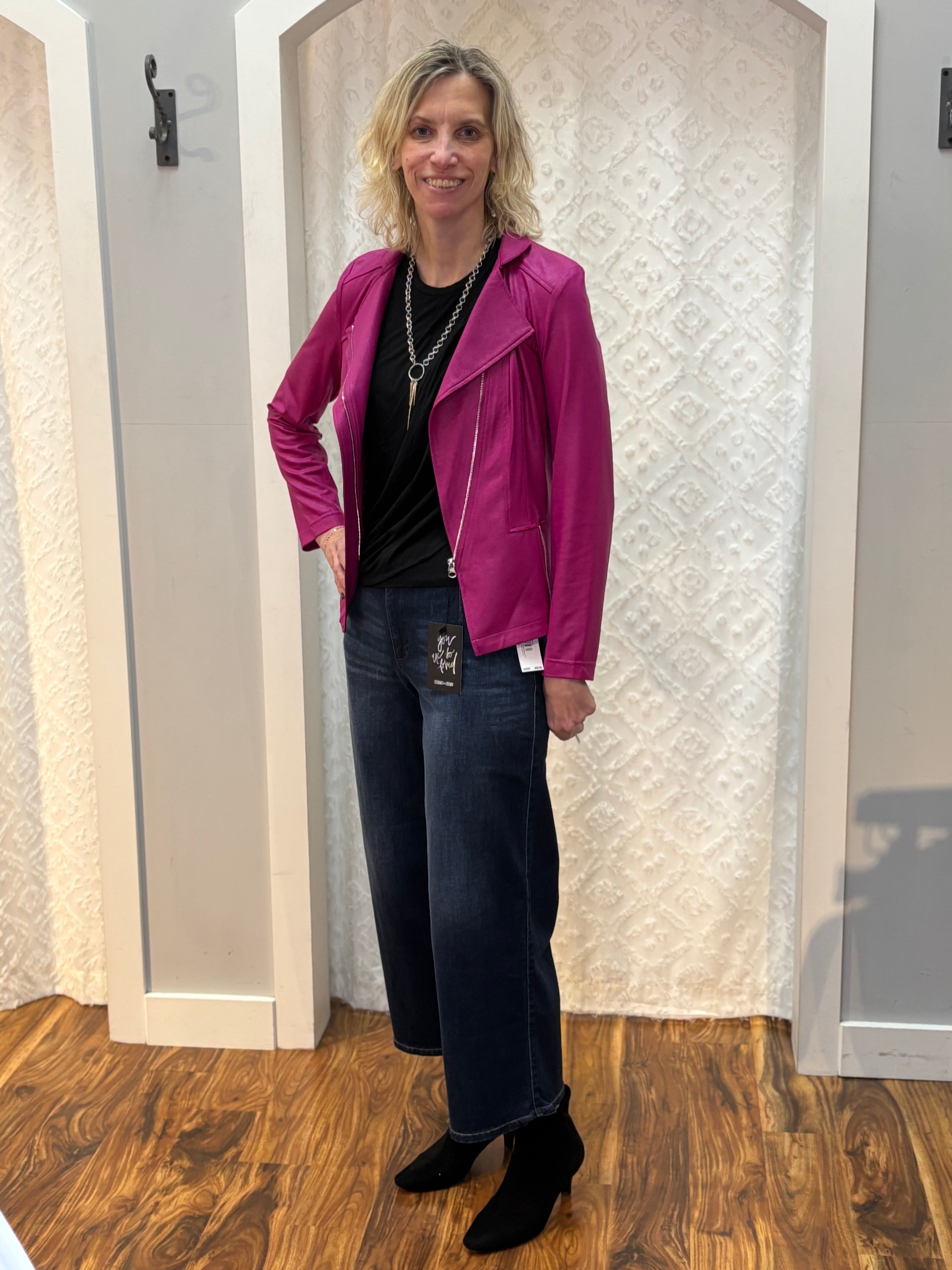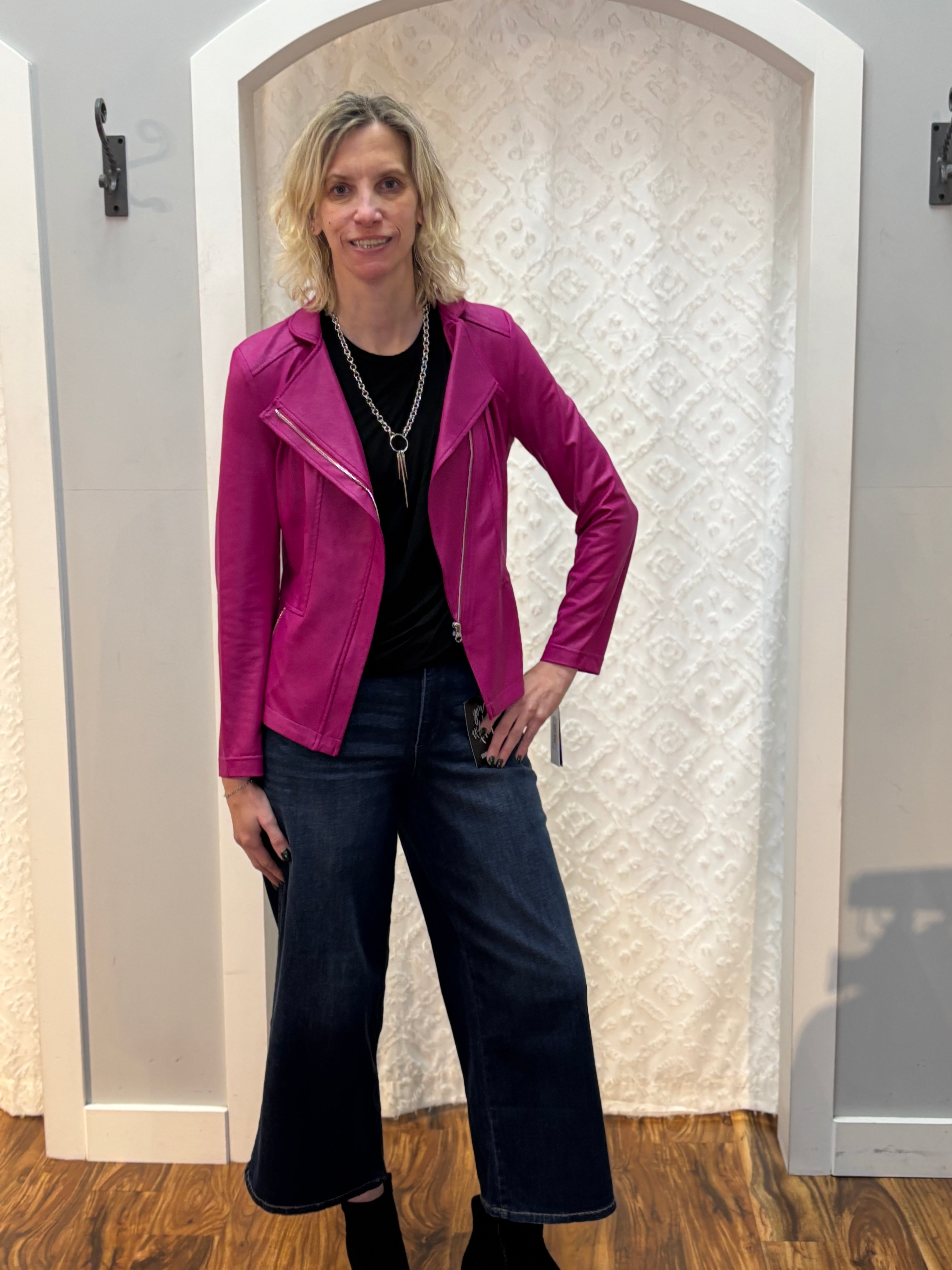 Classic Liquid Leather Knit Jacket wit Zip Details