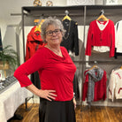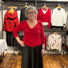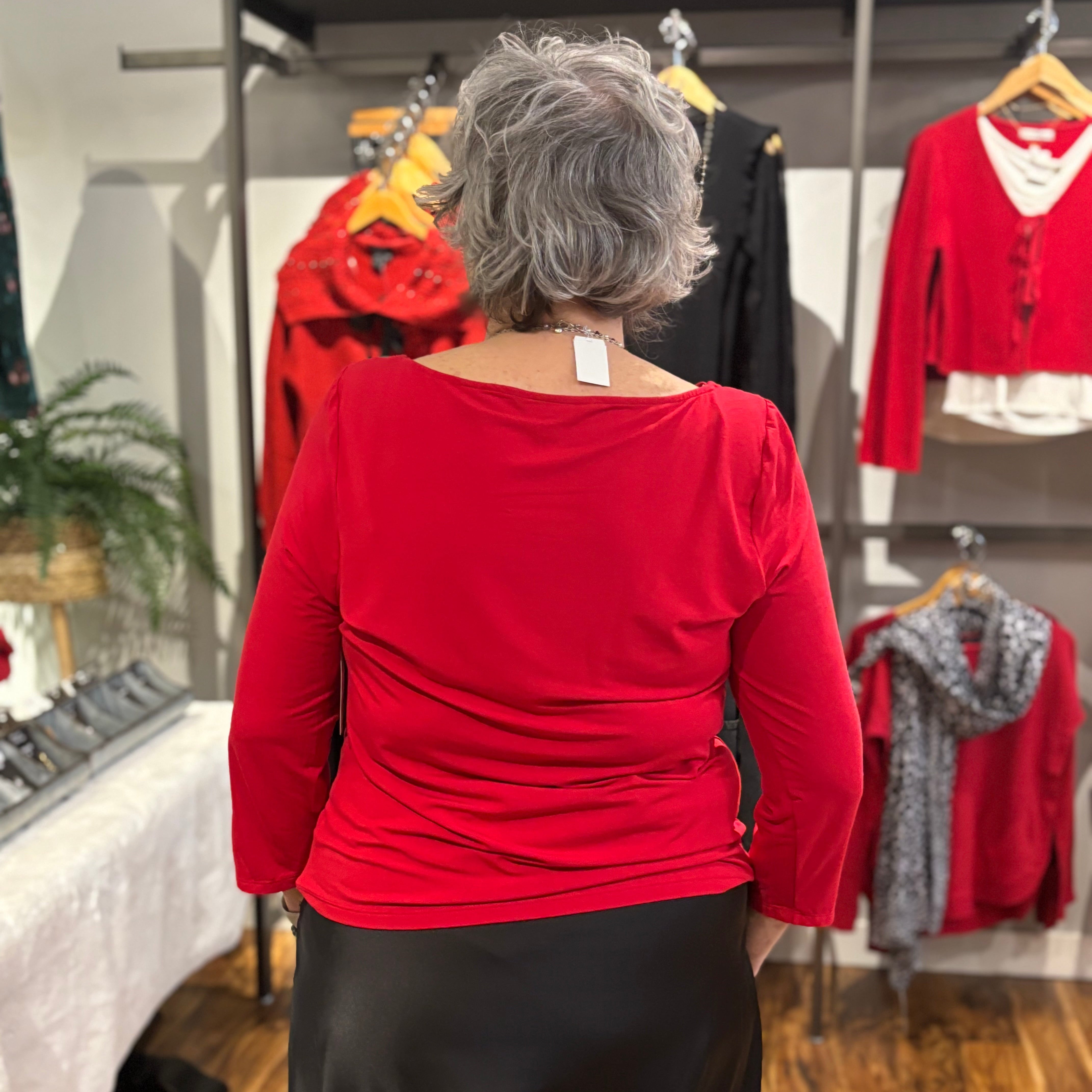 Soft, lightweight, and effortlessly chic, this Cowl Neck Top is designed to flatter with a natural, flowing drape. Crafted from a super-soft bamboo-elastane blend, it offers gentle stretch and all-day comfort while maintaining a luxurious, breathable feel. The elegant cowl neckline, 3/4 sleeves, and striking red color make it perfect for the holidays—and stylish enough to wear all year long.