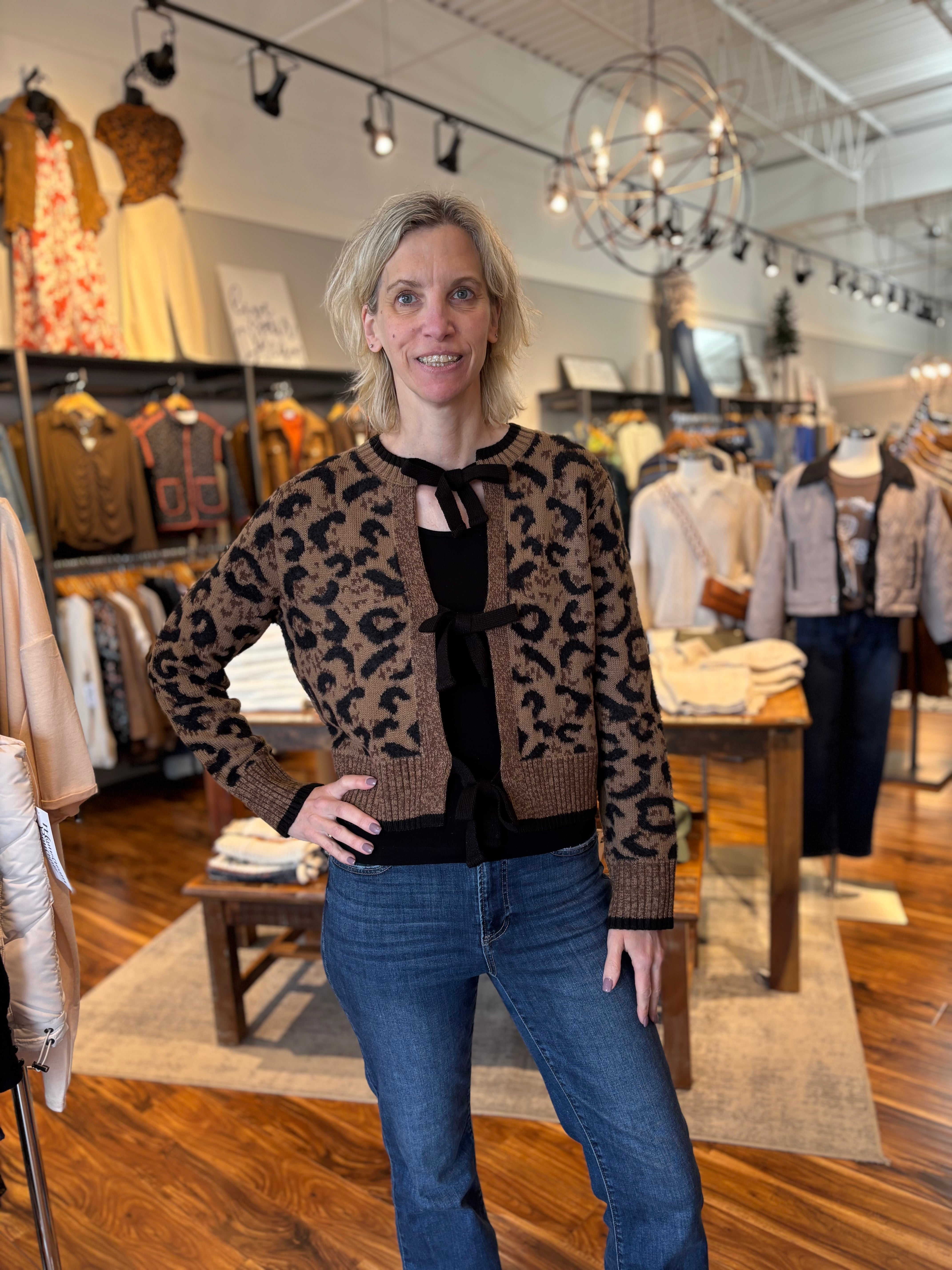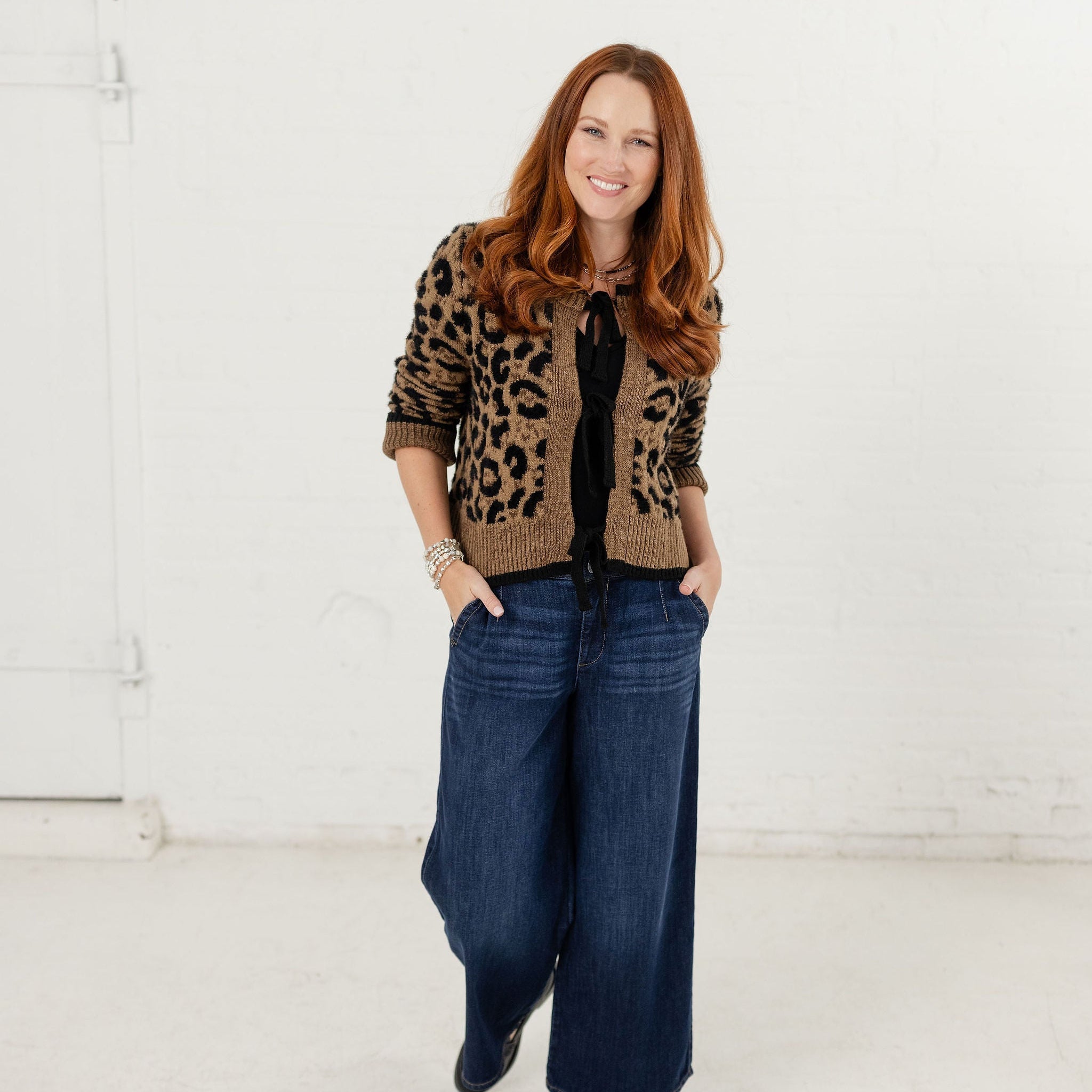 Soft sophistication meets subtle edge in this Tie-Front Jacquard Cardigan, featuring a beautiful animal print woven into a luxe textured knit. Crafted from a cozy acrylic-nylon blend, it drapes beautifully while keeping you comfortably warm. The tie-front closure adds a feminine finish, making it perfect for layering over camis, tees, or turtlenecks all season long.