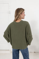 The Batwing Mixed Media Rhinestone Top is where cozy comfort meets subtle sparkle. Designed in a fuzzy ribbed fabric with dolman-style batwing sleeves, it drapes effortlessly for that perfectly relaxed fit. Scattered silver micro-stud rhinestones shimmer across the front, adding just enough shine to take this top from casual daytime wear to a night-out look. Soft, stretchy, and endlessly versatile, it’s the kind of piece that feels special but wears easy.