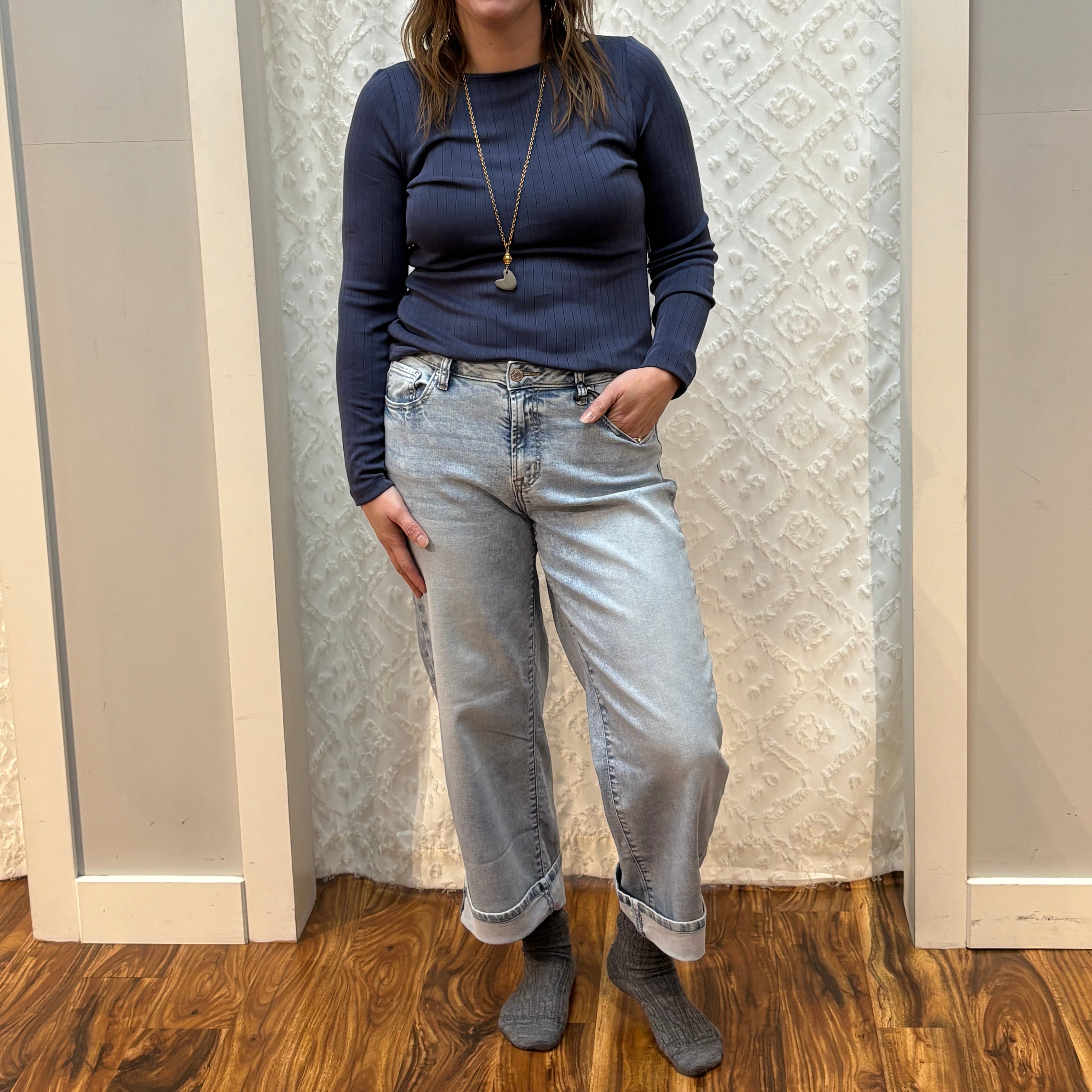 Cuffed Denim Relaxed Straight Leg