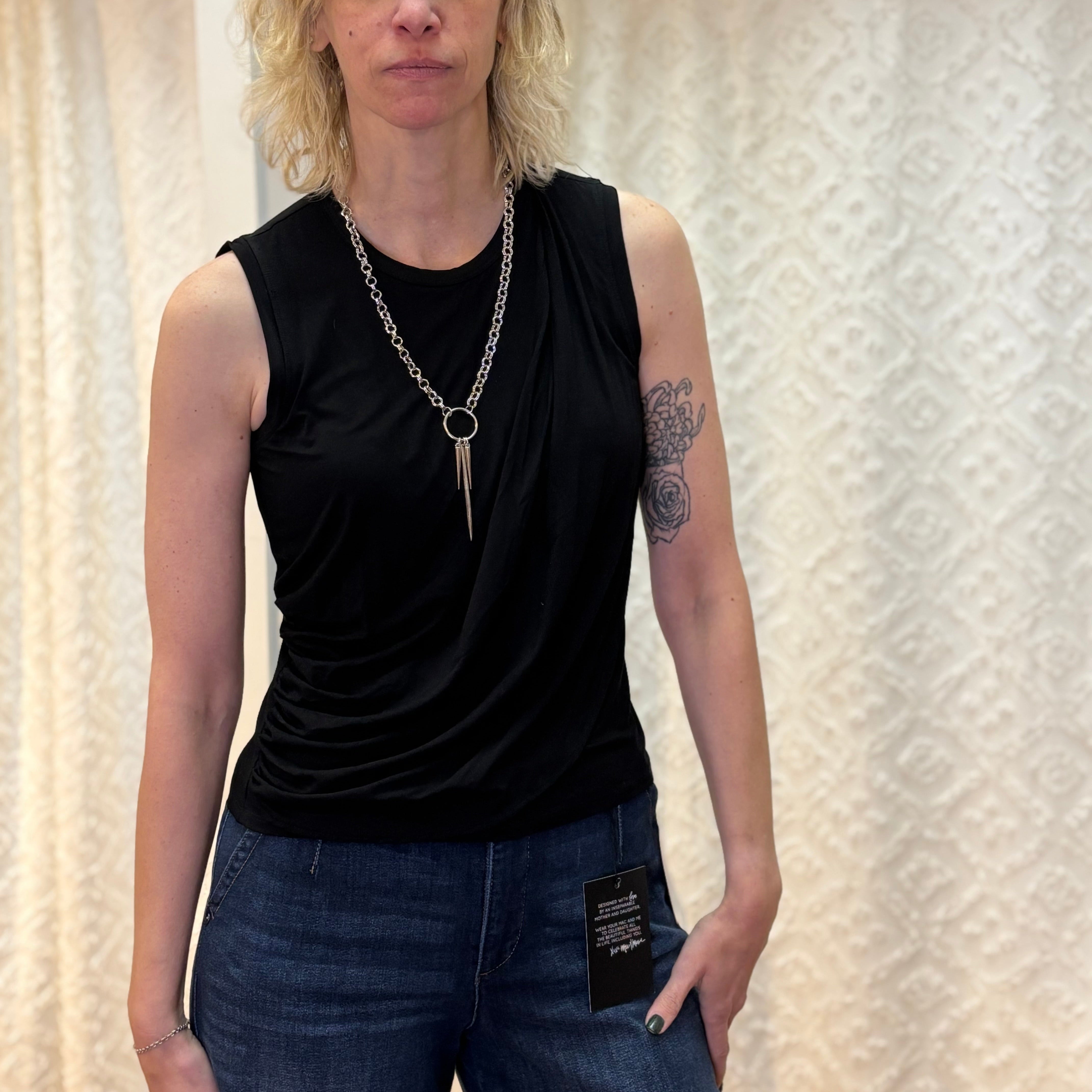 Meet your new layering MVP. This draped front tank features a flattering side-gathered design that beautifully skims and disguises the tummy area—perfect for those days you want effortless confidence. Crafted from a soft, stretchy rayon-elastane blend, it pairs seamlessly under jackets, blazers, or cardigans while still looking chic on its own.