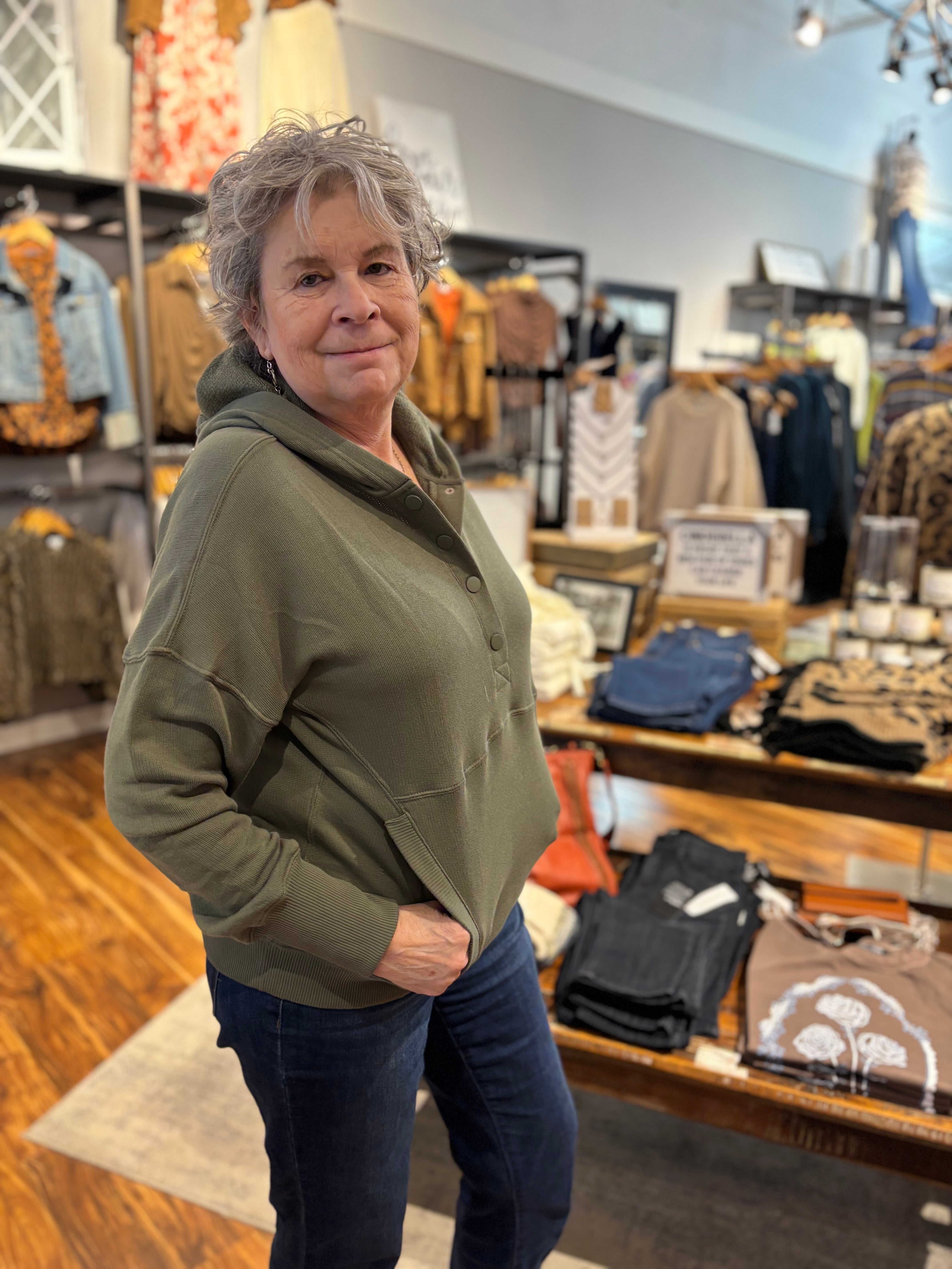 The perfect mix of laid-back comfort and effortless style, this Half-Snap Hoodie Sweatshirt is your go-to for cozy days. Featuring a button half-snap neckline, kangaroo pocket, and soft hood, it delivers that just-right blend of sporty and chic. Crafted from a cotton-blend fleece, it’s lightweight yet warm—perfect for layering through every season.