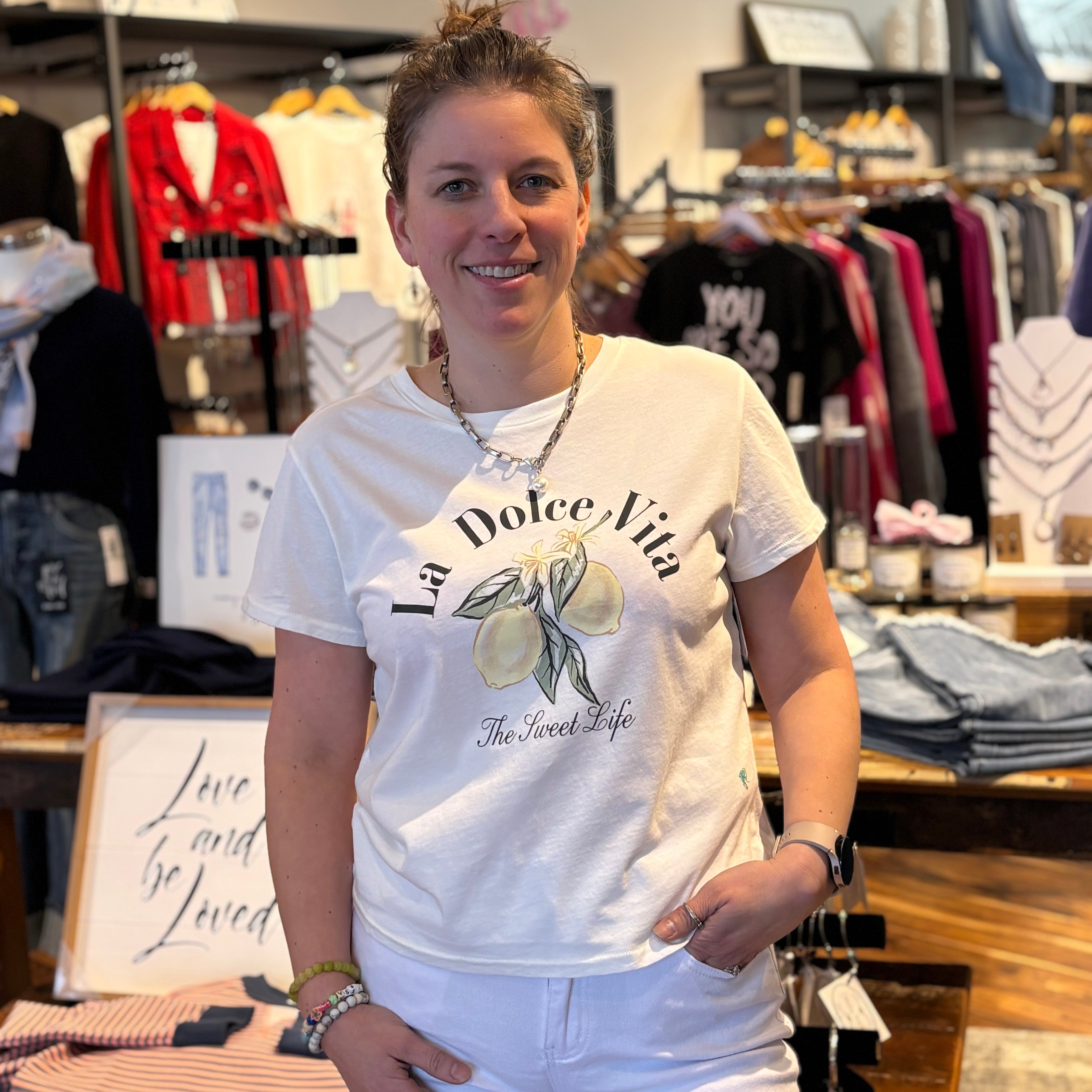 Sweet, sunny, and made for savoring the moment. This “La Dolce Vita – The Sweet Life” cropped tee features a playful lemon graphic that brings instant vacation vibes. Crafted from 100% cotton, it’s soft, breathable, and perfectly timeless.