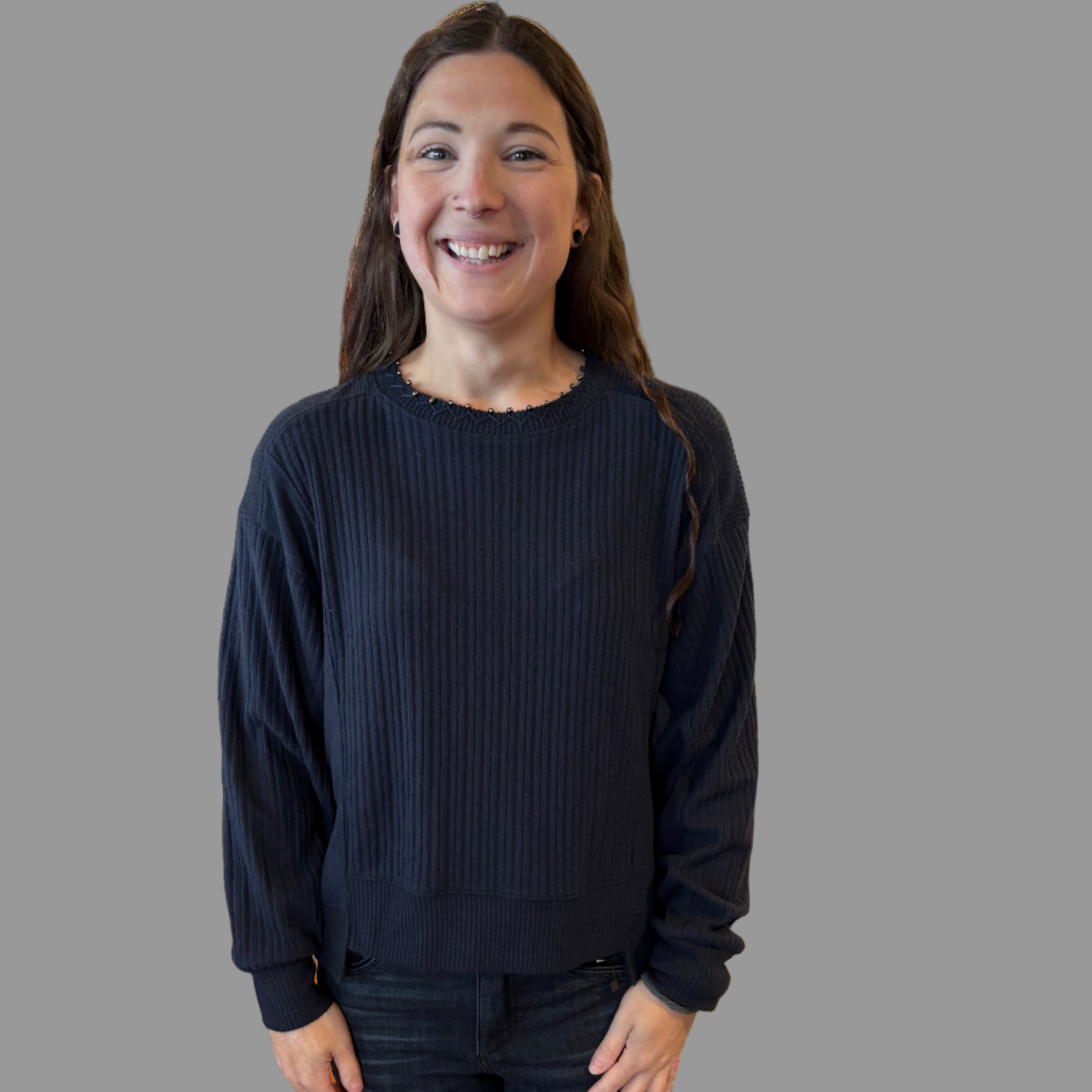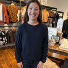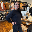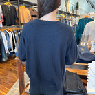 There’s no need to accessorize when you wear this mixed media knit top: the jewelry is built-in! This style has long dolman sleeves, a U-shaped back yoke, and a scoop neck adorned with a chic embroidered pearl detail.