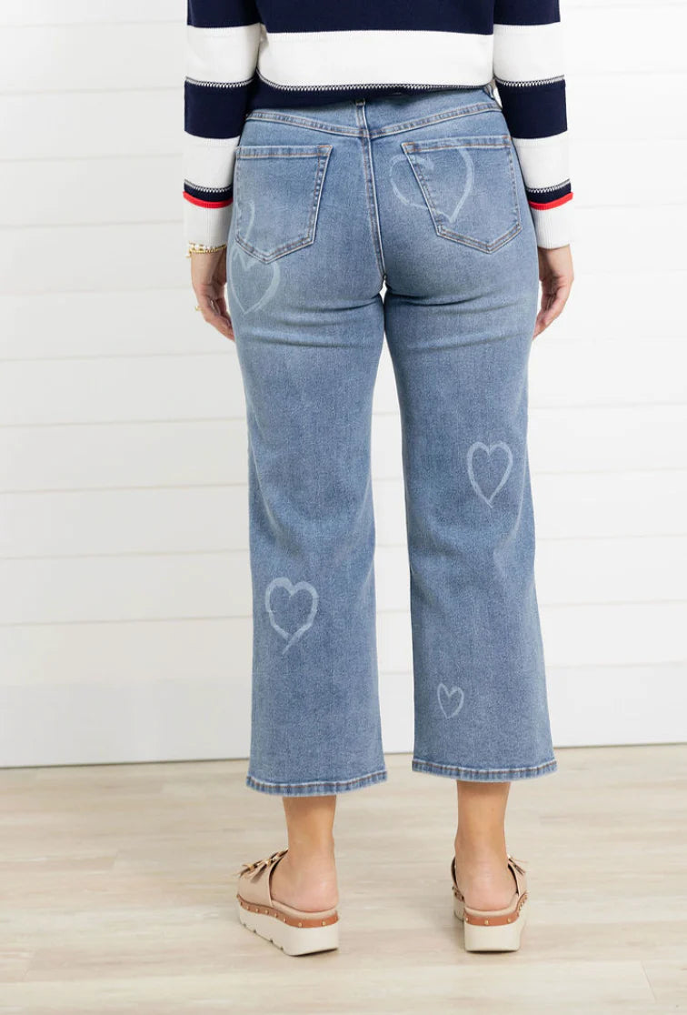 MB Bleached Heart Print Sophia Straight Leg