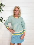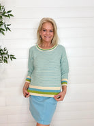 MB Striped 3/4 Sleeve Scoop Neck Sweater