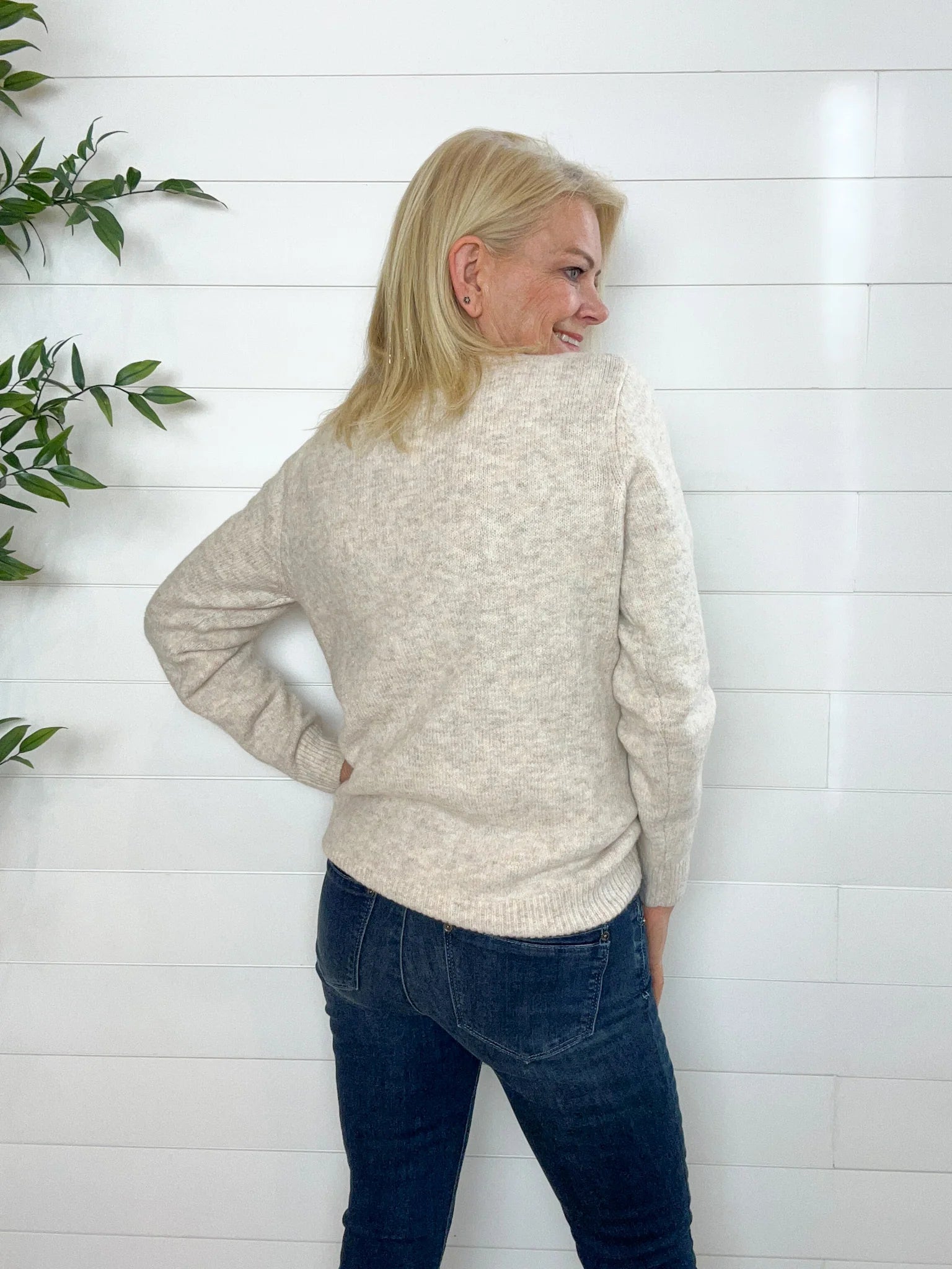 Pair it with dark wash jeans and ankle boots for a casual winter look—or layer over a collared shirt for extra charm.