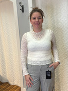 Delicate, feminine, and endlessly versatile, this Long Sleeve Round Neck Lace Top is the perfect option for anyone who loves the look of lace but not the higher mock neck found on most styles. The classic round neckline offers a more relaxed, easy-to-wear feel while still delivering all the elegance you want.