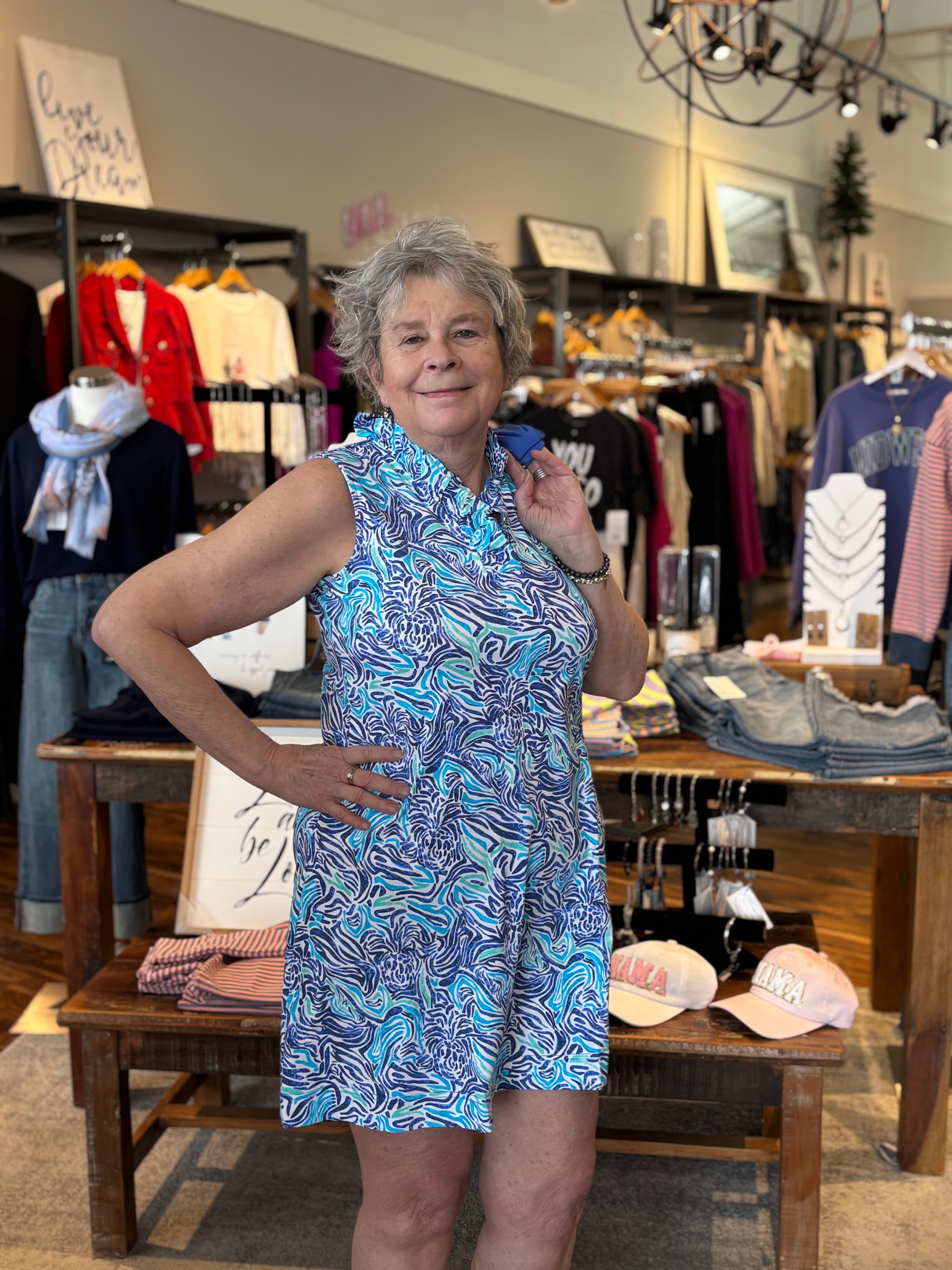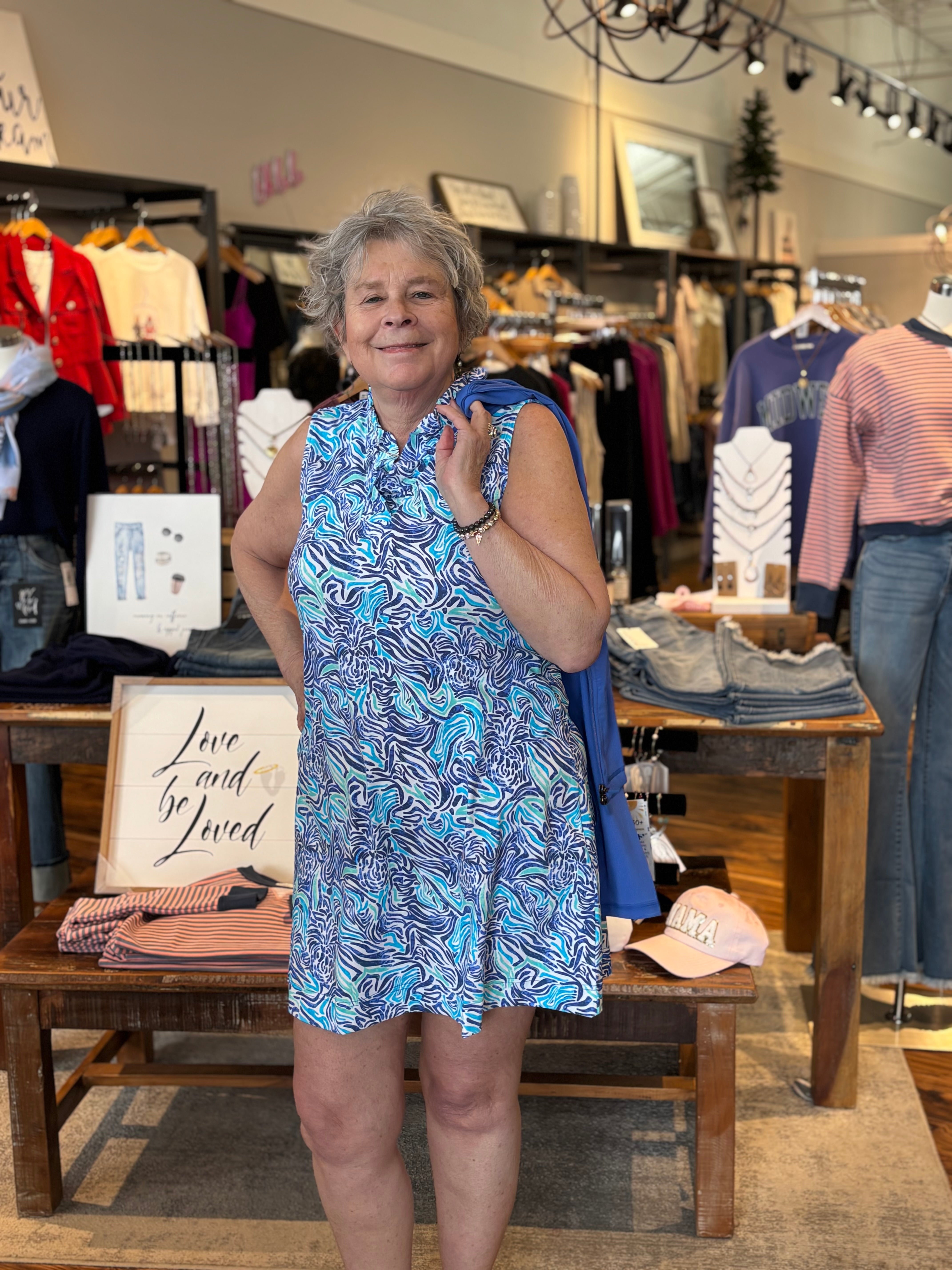Easy, flattering, and made for sunny days. This sleeveless V-neck dress features a soft ruffle detail along the neckline for a feminine touch, paired with a lightweight, cooling fabric that keeps you comfortable all day. Built-in SPF 50 offers added sun protection, making this a go-to for warm weather, vacations, and outdoor plans.
