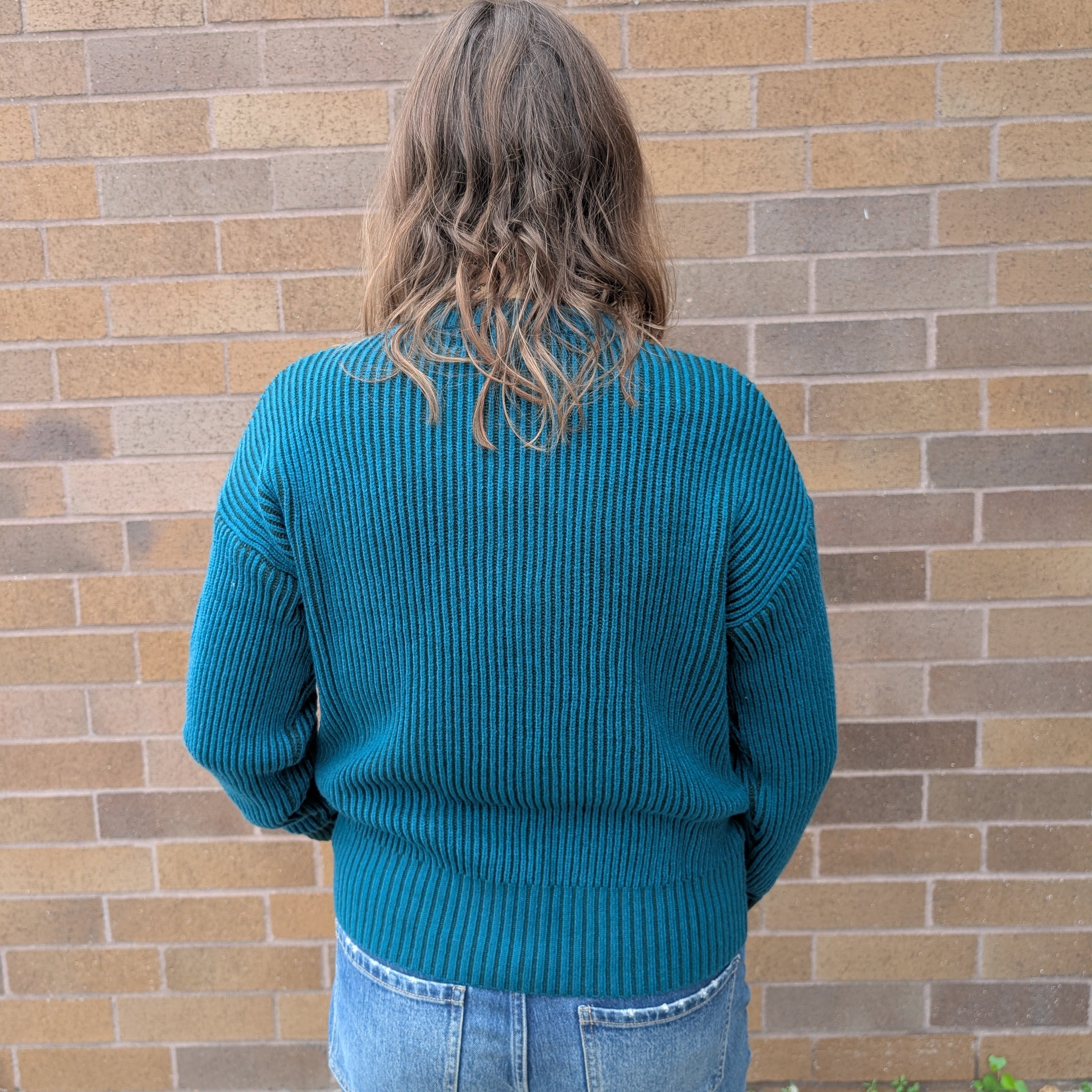 Experience cozy style with this Crewneck Ribbed Ombre Sweater, featuring an oversized fit and two harmonious green tones. The contrasting cuffs add a distinctive touch, offering versatile wear whether cuffed or loose. Crafted with ribbed detailing, it delivers both comfort and a textured look ideal for layering throughout the season.