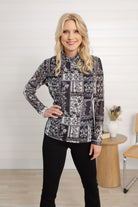 This MB mesh top takes layering to the next level with its double-layered, super-soft fabric. The long sleeves and mock neckline give it an elegant silhouette, while the subtle print keeps it playful and chic. Perfect for layering under jackets or wearing solo for a touch of effortless sophistication.