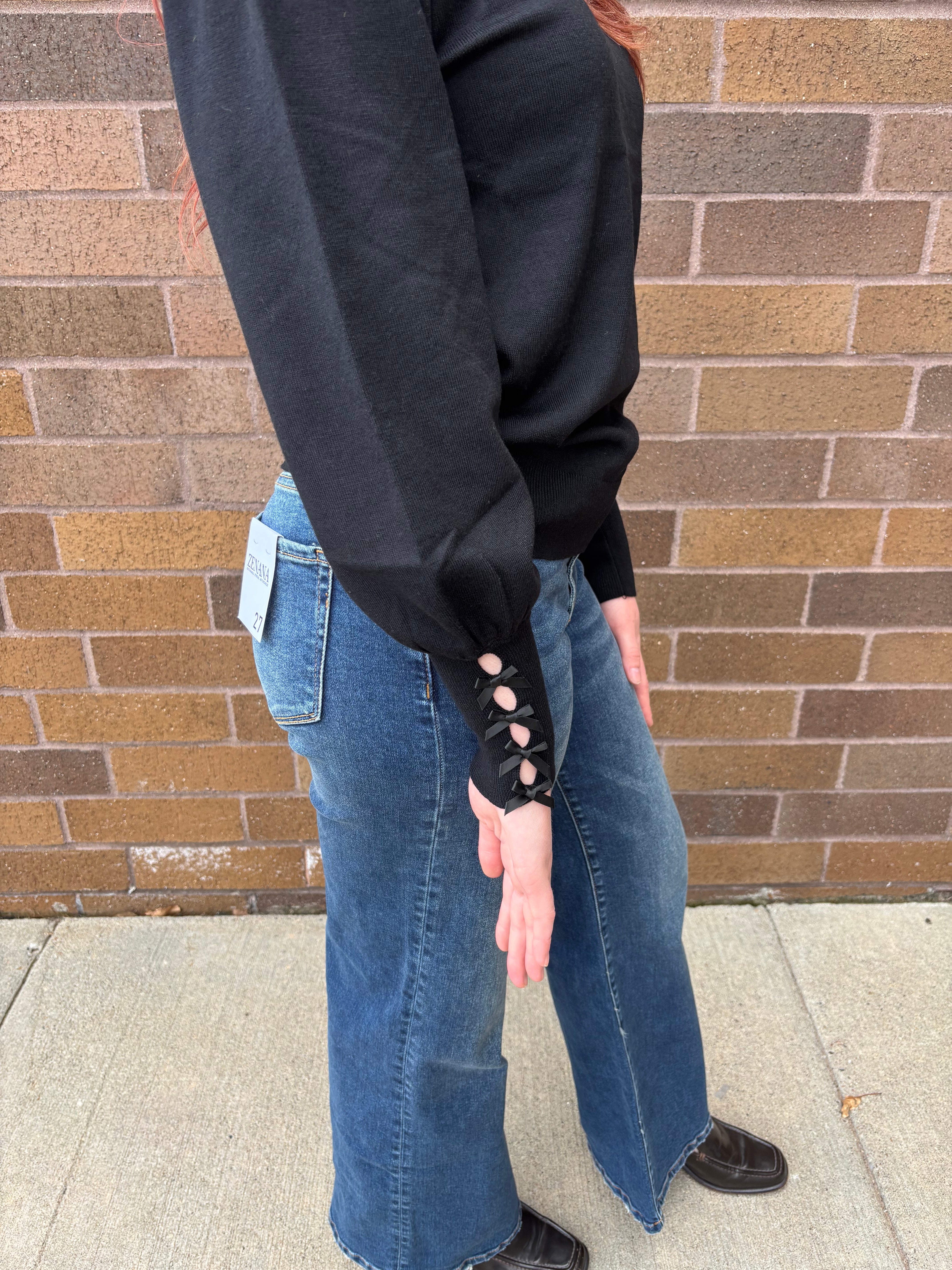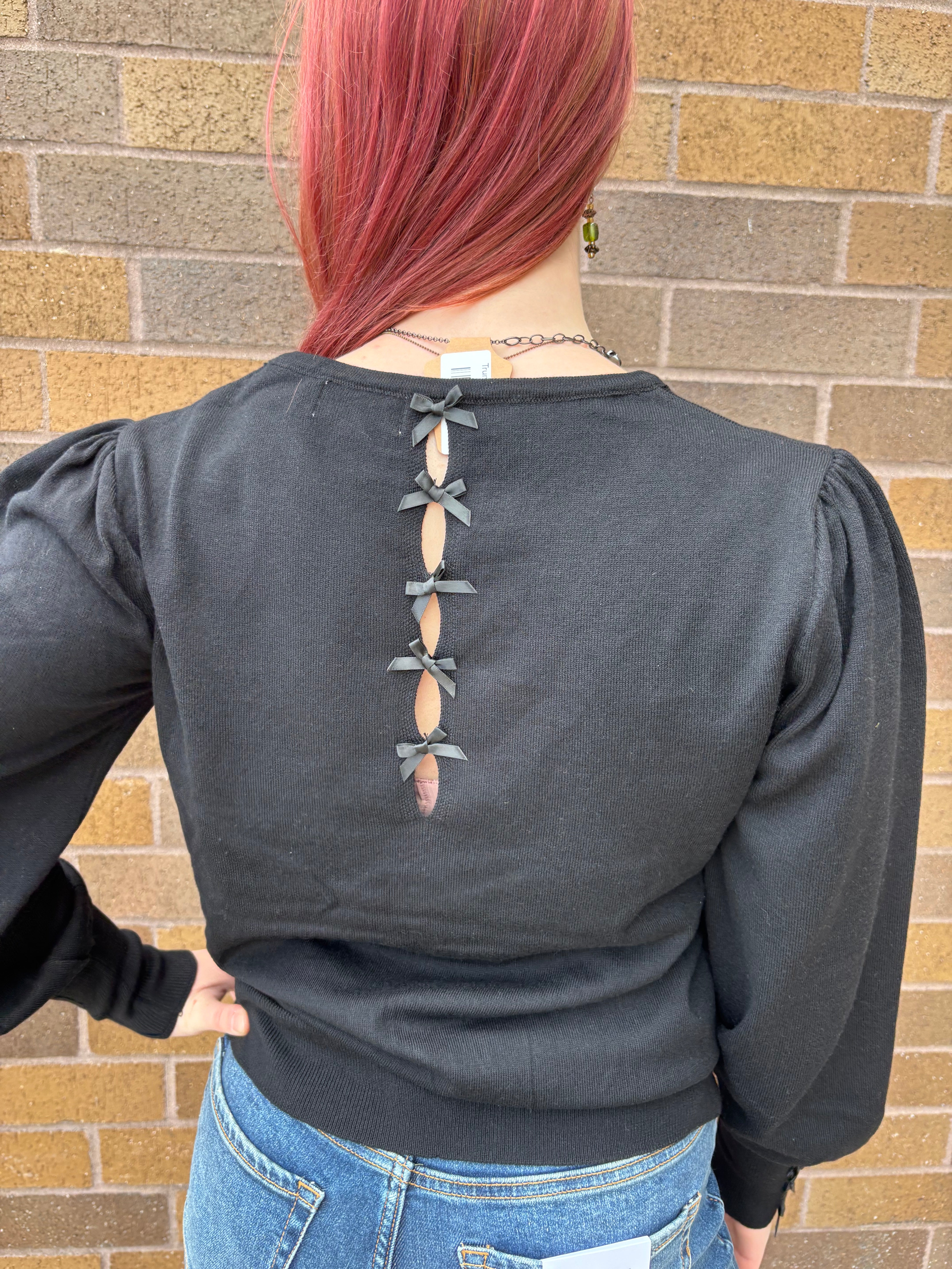 This finely crafted crew neck sweater features a tight weave that ensures durability and a smooth finish. Thoughtfully designed with charming bow details on the arm cuff and back, it offers a subtle yet stylish touch of elegance. Perfect for layering or wearing alone, this piece blends classic comfort with refined accents for a versatile addition to your wardrobe.