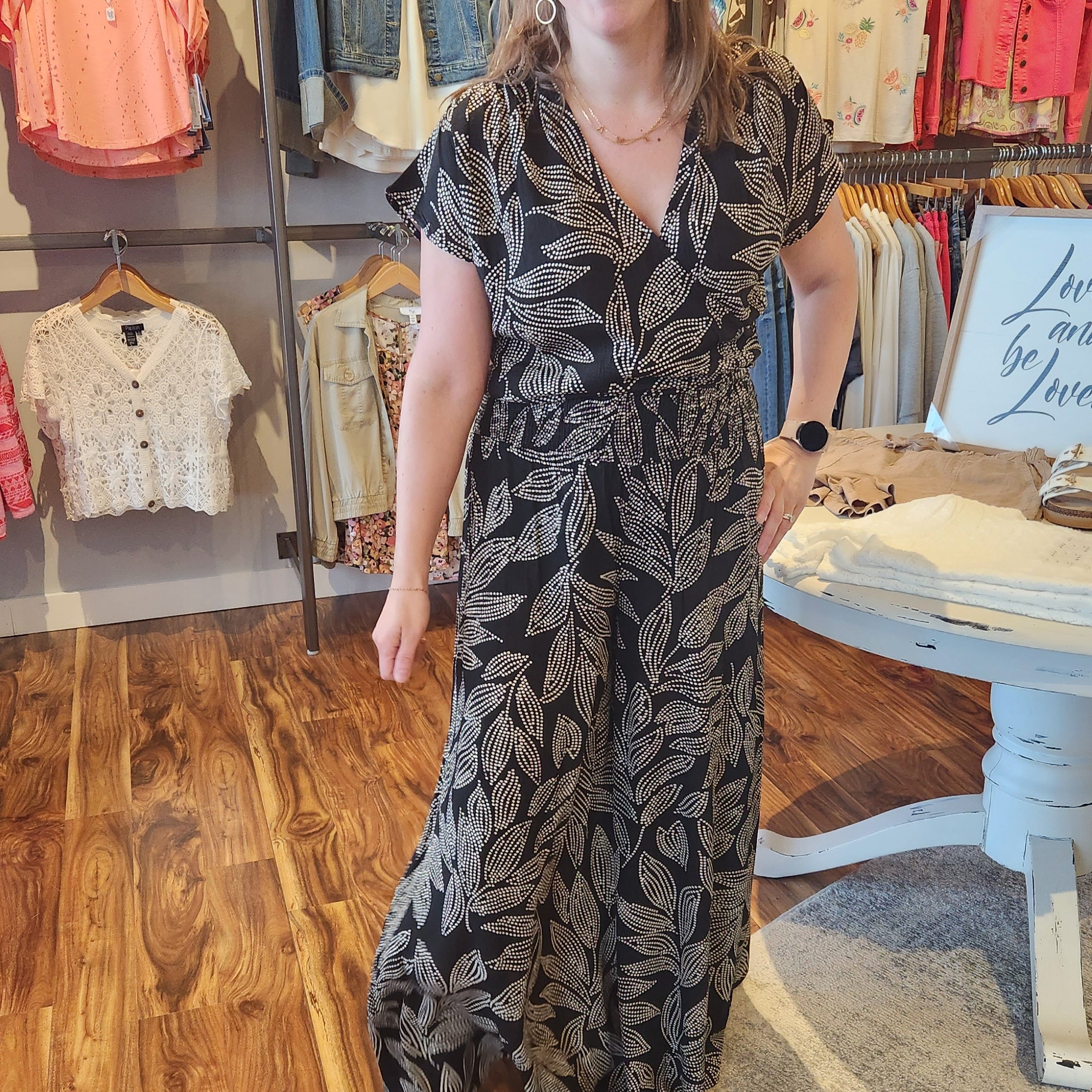 This lightweight cropped top features a cross-front design with a convenient snap closure, combining style and functionality. Sold separately from the matching pants, it can be paired to create a seamless jumpsuit look, offering versatile options for a chic, contemporary outfit.