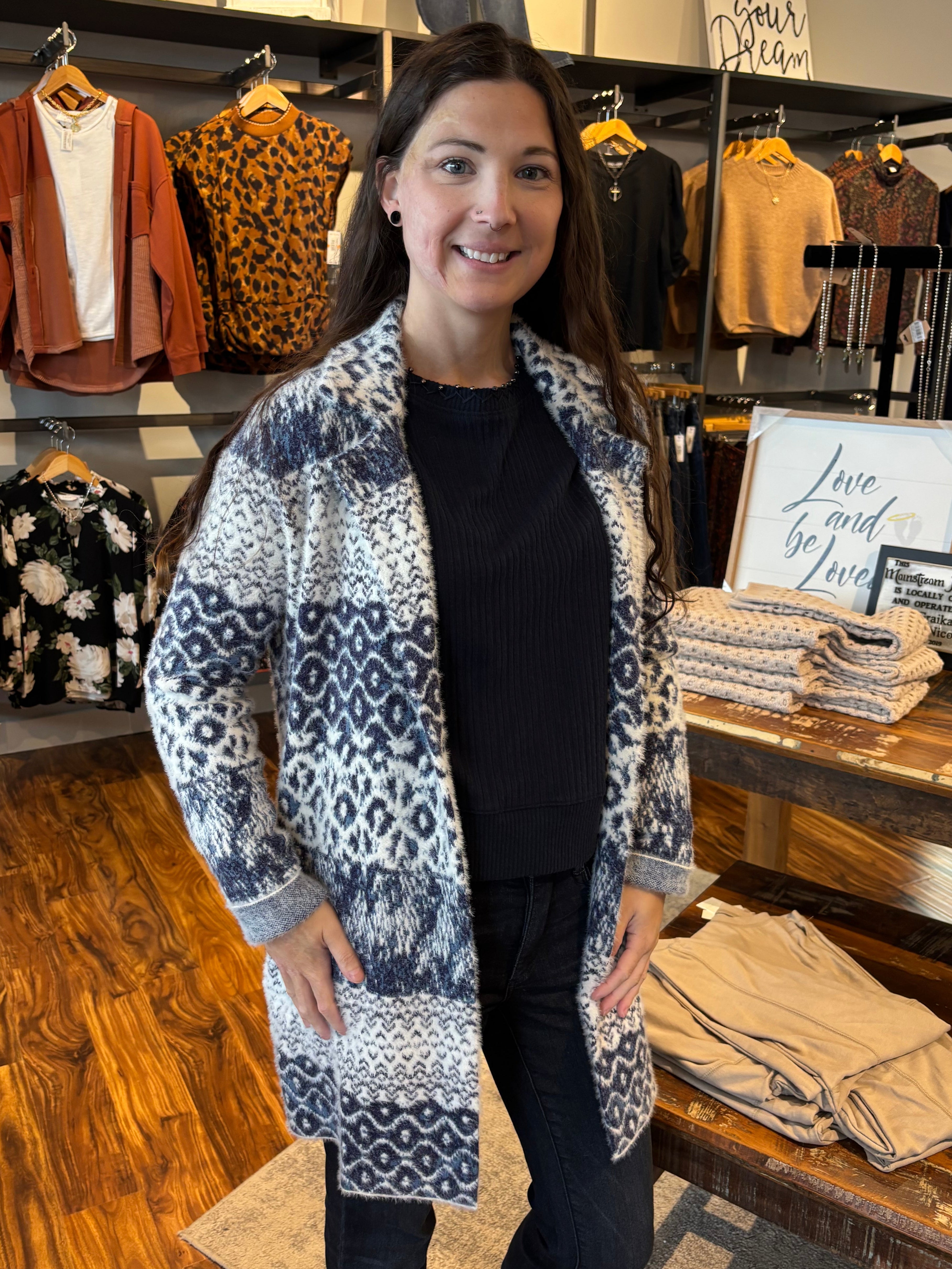In a soft plaid, this open-front coatigan is the perfect balance of structure and comfort. Designed with a double notch collar and clean seam pockets, it drapes effortlessly over knits, denim, or tailored layers—your go-to for cozy, pulled-together days.