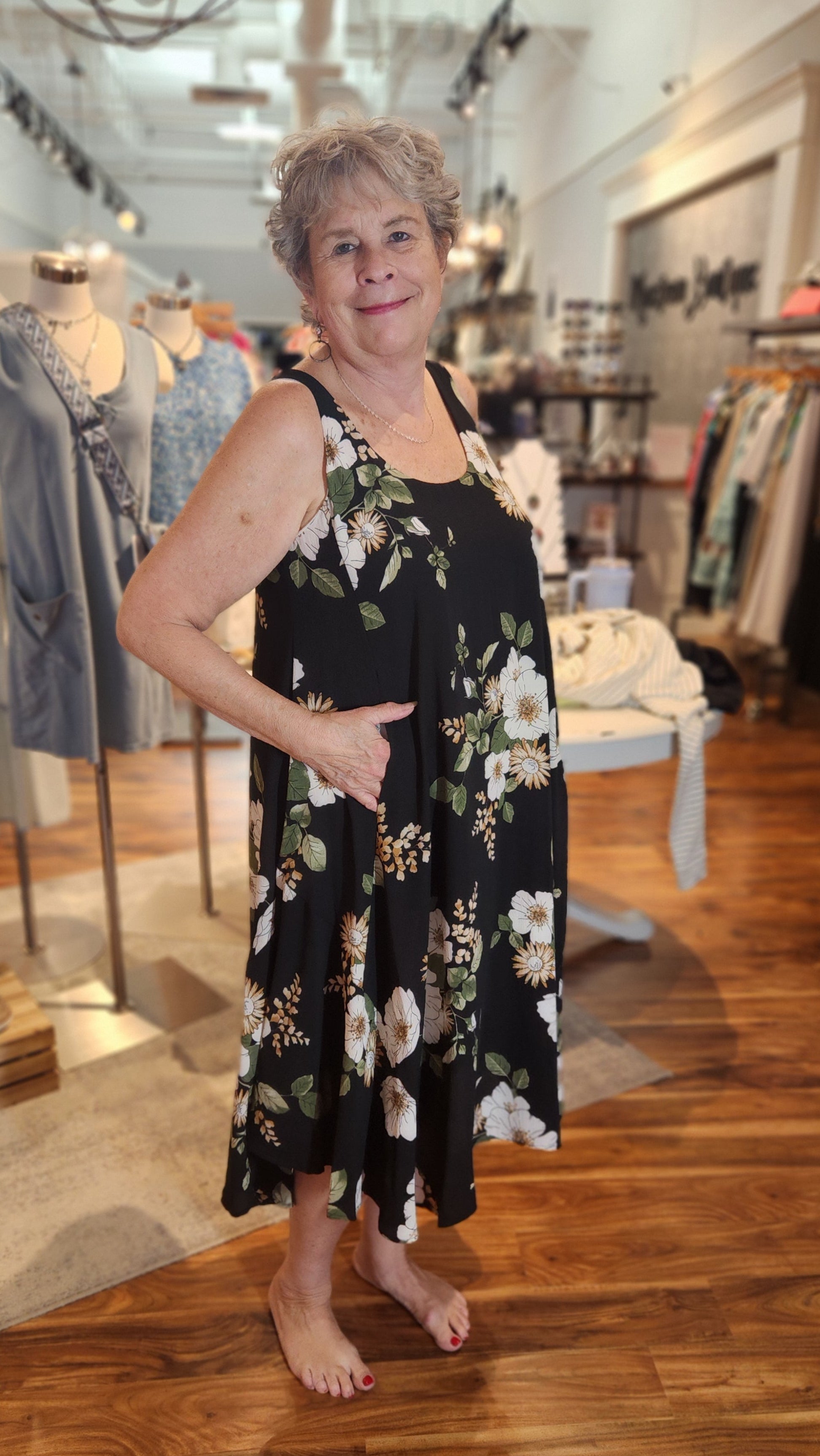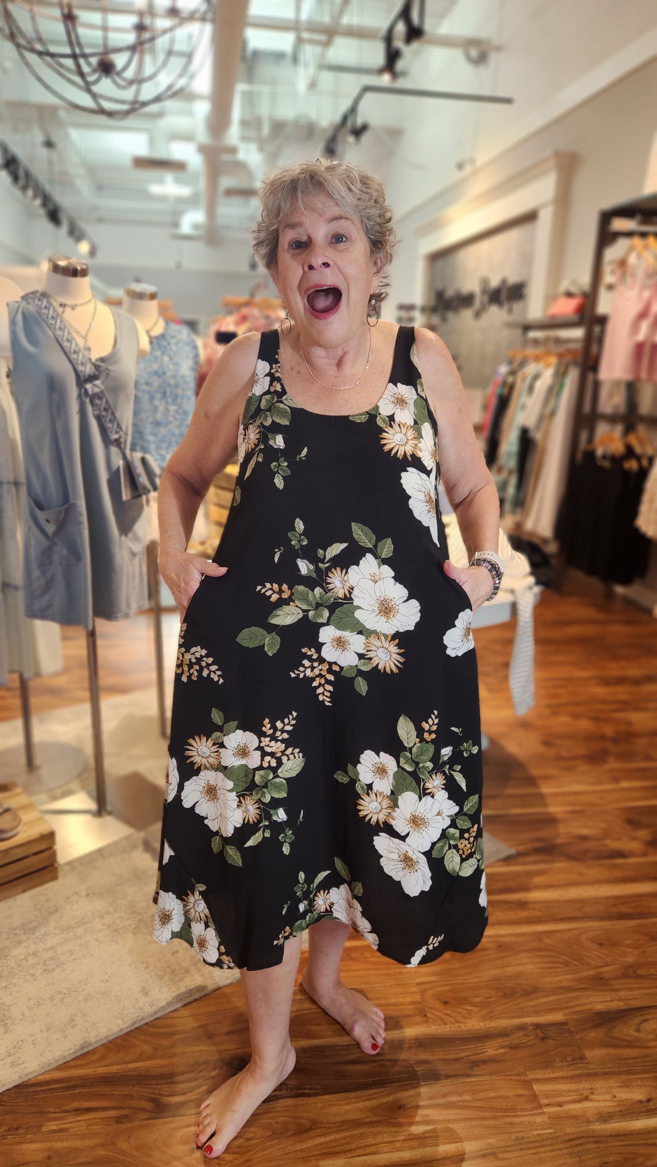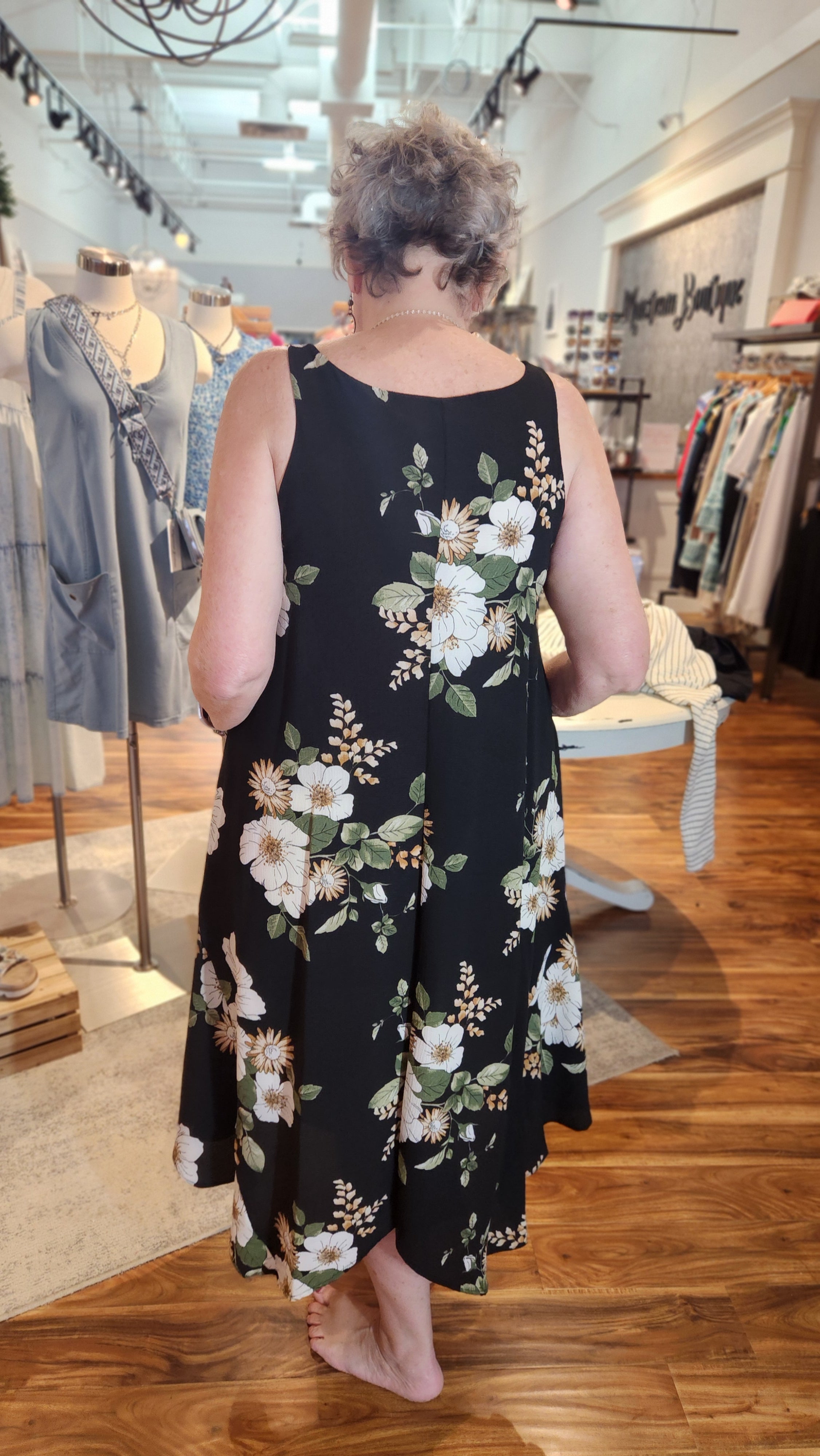 Elevate your wardrobe with this sleeveless midi dress crafted from soft crepe material featuring an elegant floral pattern. Fully lined for comfort and a smooth fit, it includes practical pockets for convenience without compromising style. The midi length offers versatility suitable for both casual and formal occasions, combining sophistication with everyday functionality.