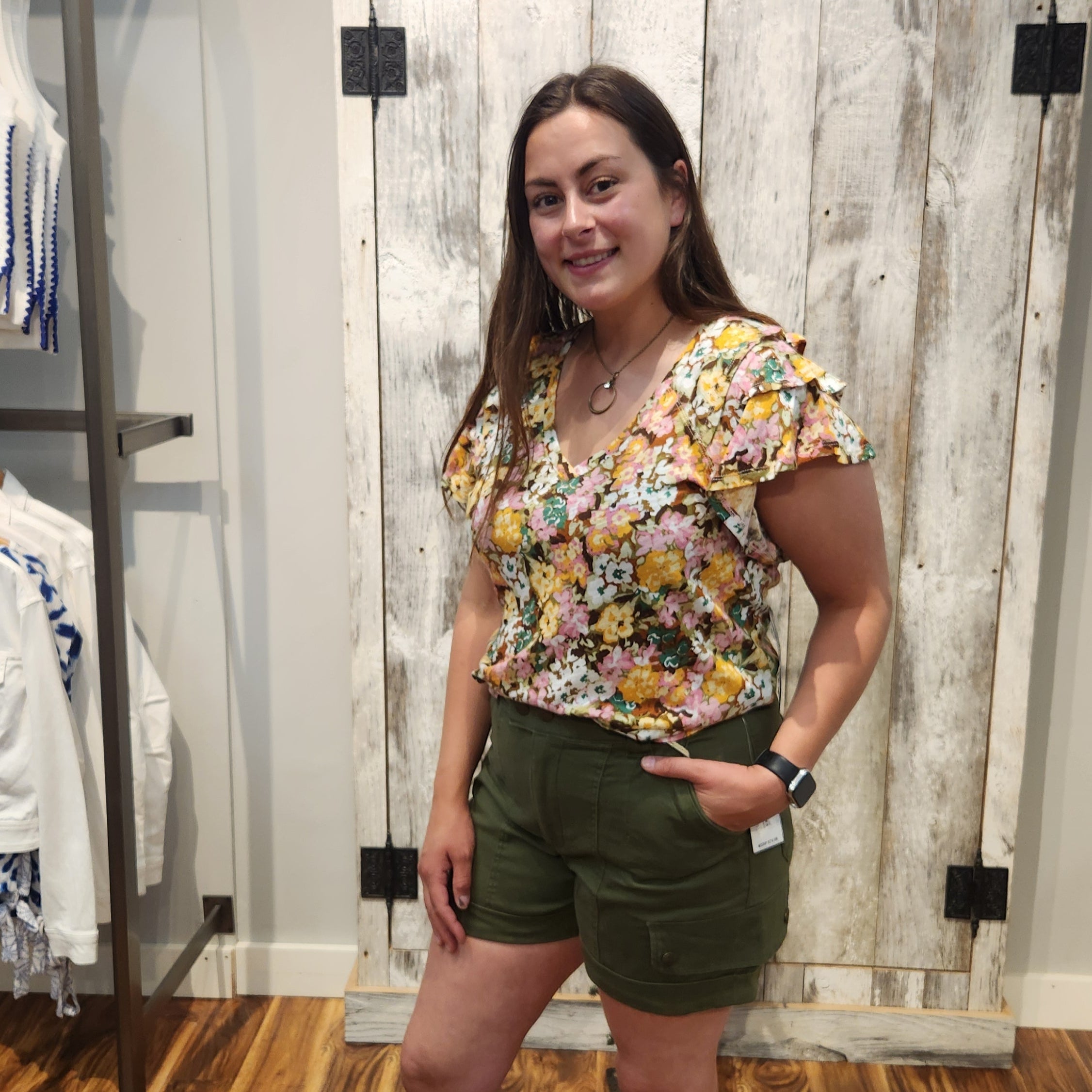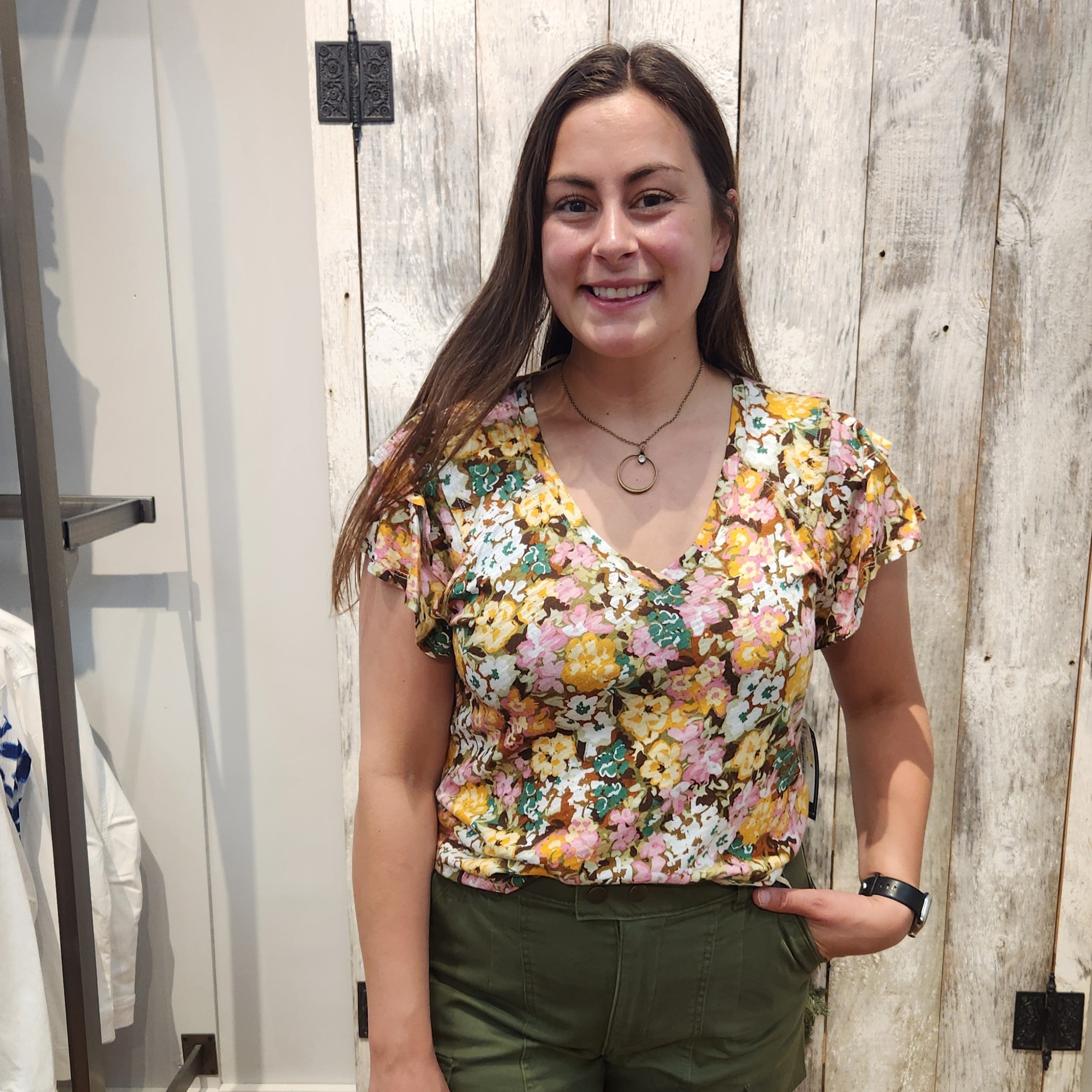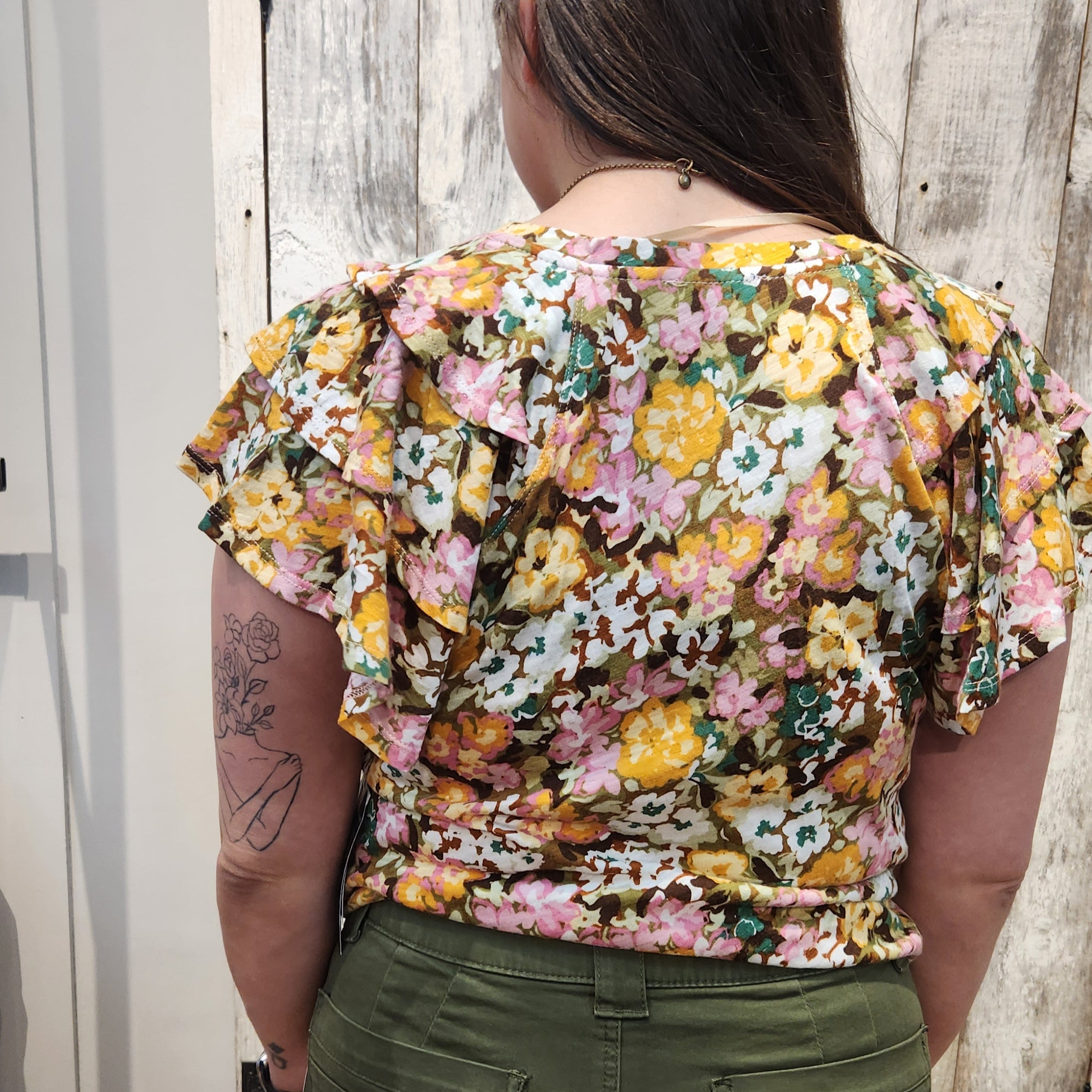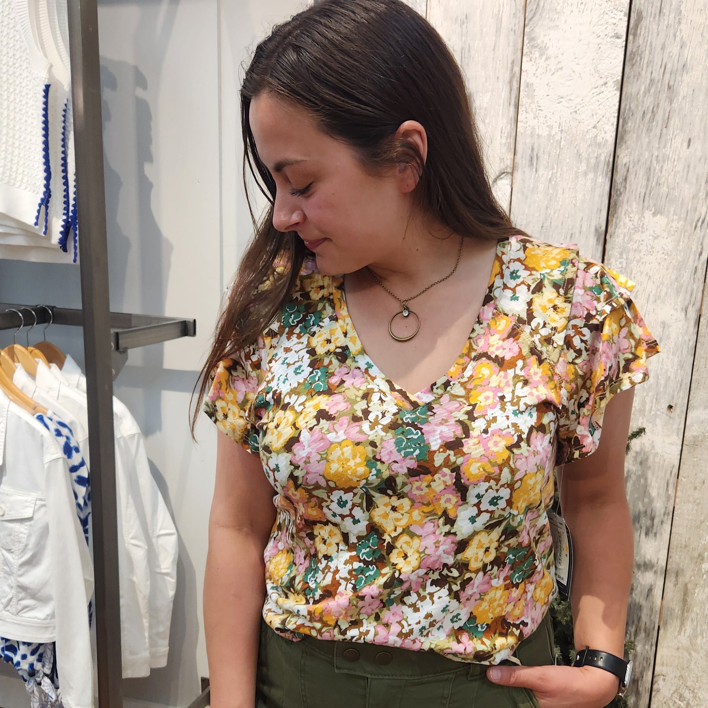 This expertly crafted SS Tiered Bell Sleeve Top combines 60% cotton and 40% modal for exceptional softness and breathability against the skin. The elegant design features delicate triple tiered sleeves and an eye-catching floral pattern. The premium fabric blend ensures comfort while maintaining a refined silhouette that transitions effortlessly from casual to dressy occasions.